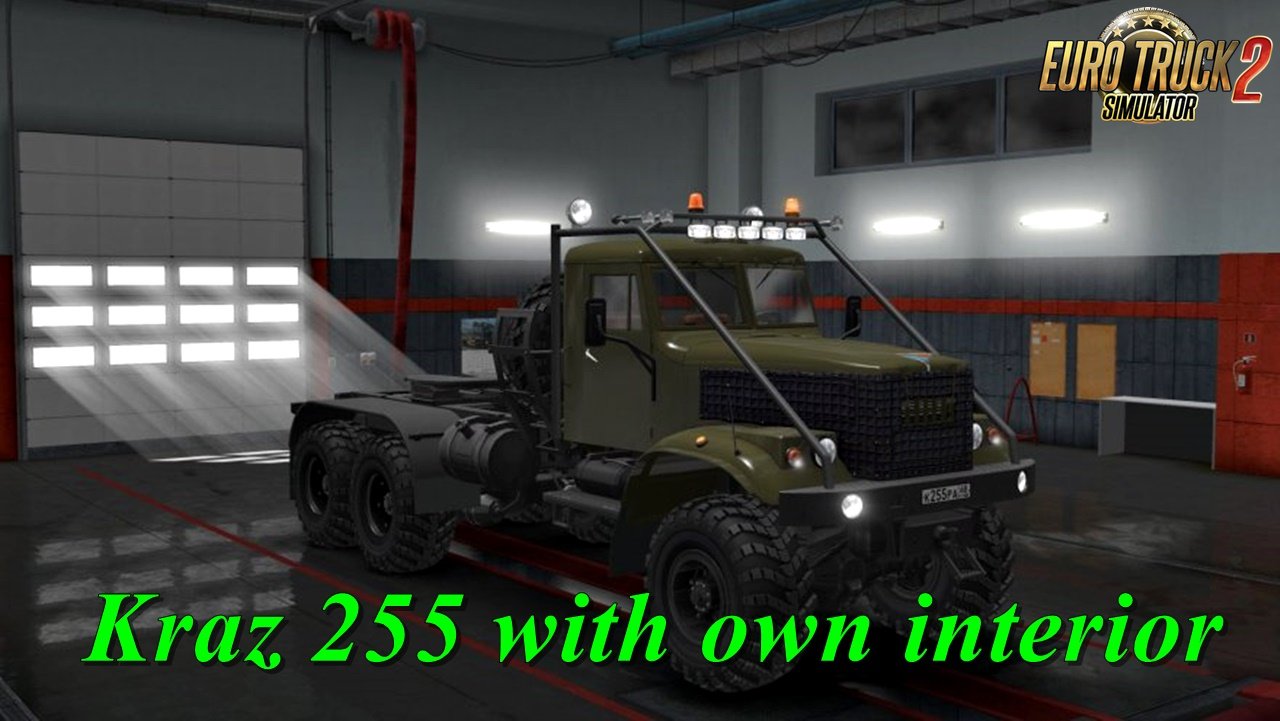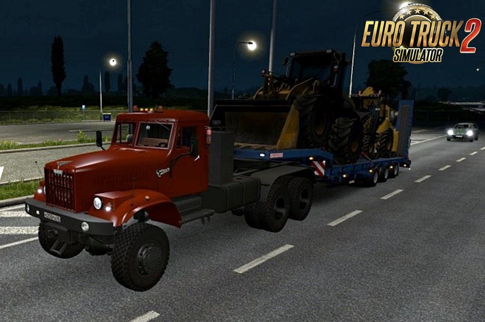 Truck KrAZ 255 for Ets2 1.35.x game version (Update 03.10.19) Features: - The truck is standalone, does not replace anything. Sold at the Volvo truck dealer. - A conventional 6x6 chassis and rigid chassis. - An accessories in the cab and external tuning, own wheels, sounds. - Engines with tuned torque curves. - Several types of standard and high-speed transmissions. - Spiral trailer cables. - Support for new SCS physical correct mirrors. - Localization for 10 languages: Russian, English, German, French, Bulgarian, Czech, Slovak, Macedonian, Serbian, Polish. ************ Attention!!! Although technically support for Advanced trailer coupling simulation is available, standard trailers did not coupling because of the very high truck height. So if you don't have mods with suitable high trailers, disable the Advanced trailer coupling simulation in the gameplay settings. For the first 3 low-power engines there is available for choice the gearbox "YaMZ-236N + Transfer case", which is only for MANUAL switching. The automatic transmission in the game with it does not function properly. The first 5 high range gears in this gearbox for normal conditions, followed by neutral and 5 low range gears for heavy duty. Other gearboxes are working properly with automatic transmission. ************ New changes in the current version: – Added KrAZ 258 tractor with 6×4 chassis and 320-508 road wheels. – Reduced the diameter of the rear twin wheels for KrAZ 258 to normal size. – For KrAZ 258 remade most external accessories, added its own spare. – On KrAZ 255 maximum volume of cans with additional a keg-1,200 liters, on KrAZ 258 – 1,000 liters. – KrAZ 255 now only with wheels heightened terrain. – Chassis tractor KrAZ 255 shortened to realistic dimensions and it removed unnecessary parts from the chassis of the truck. – Fixed track width of the wheels. – Fixed the location of the rear springs. – Reduced saddle. – Fixed shadows. – Fixed position of front panel accessories + added one slot. – Added support for advanced hitching. With standard trailers from SCS does not work because of the very high height of the chassis. – Added gearbox option “YAMZ-236N + transfer case”, only for manual switching. – Added a separate mod for compatibility with accessories Sisl’s Mega Pack. – Various minor improvements. Tested in game version 1.35.x Credits: Author: Koral Adaptation and revision: _69_mf_, kv0 Sound: cepkoc Credits: koral, cepkoc, _69_mf_, kv0 |