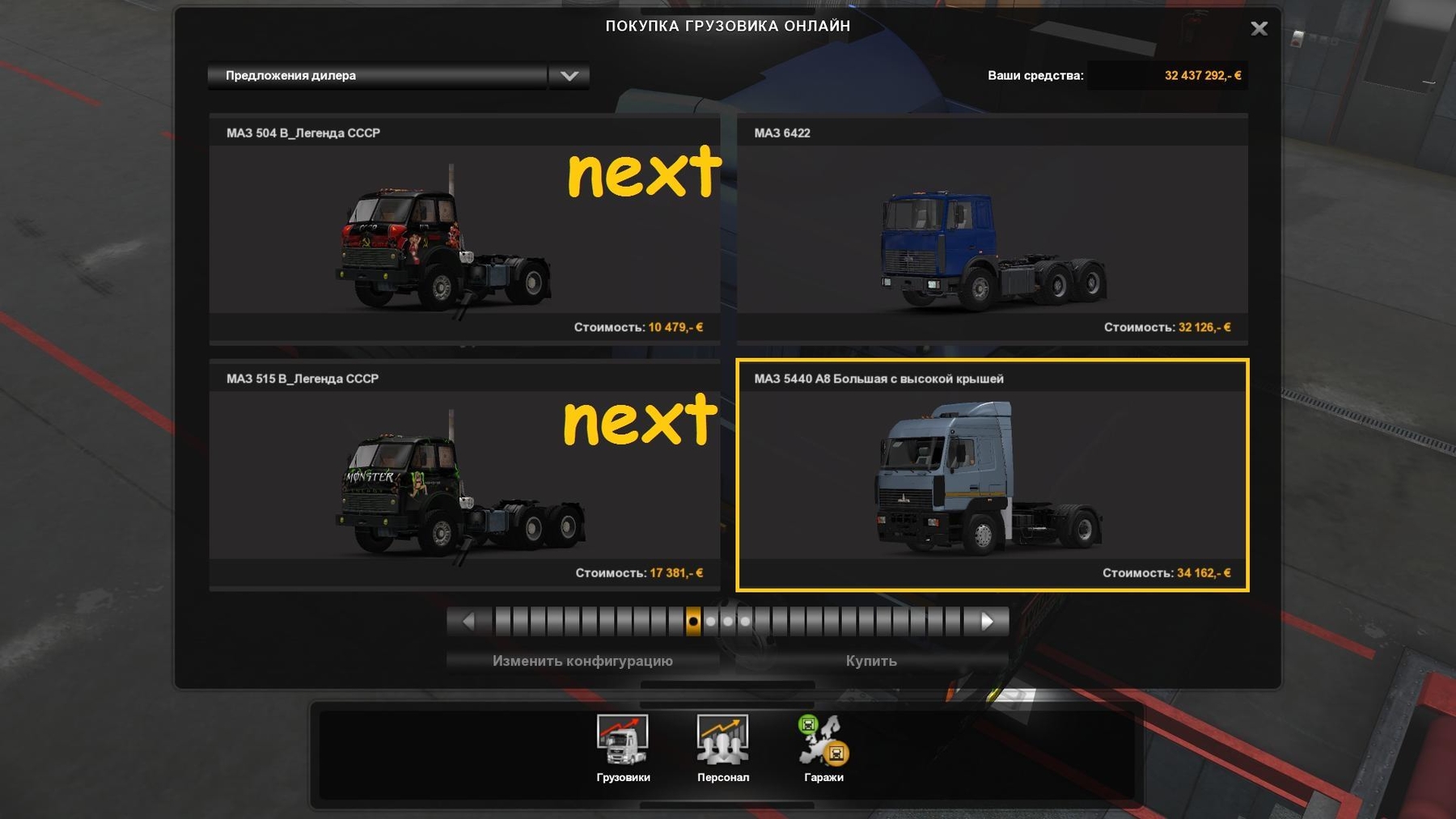 – Bought in showrooms – MAN. – 3 types of chassis: 5440А8 (4х2); 6430А8 (6х4); 5340А8 (tent 4×2). – Your own wheels + fixed sounds MAZ. – Your factory color and metallic. – Extensive tuning on the truck MAZ. – Support for DLC “Cabin Accessories and National Flags Window”. – Support advanced simulation coupling of a trailer (only for chassis 5440/6430). – No support for animation of the cables under the trailers! – Files models converted to the new 3D format to work on a new version of ETS2. – Updated galleries and companies trucks! – Added new logo MAZ! – Fixed GPS navigation and onboard computer.[v1.33.2s & above] – Changed the configuration of the chassis and physics under the new version.[v1.33.2s & above] – Changed the configuration of the painting to a new version.[v1.33.2s & above] – Added new metallic colors – 29 names. – Fixed and adapted to work in any version of the game ETS2 “v1.33.x”. – In the log is relatively clean! – Test on version ETS2: 1.32.x -1.33.2s. – Authors: knox_xss, Dark_Wolf, AlexeyP, Ols, Drzivago, Shpunt, Volk86, Nik_1MTK, Ra1ley, MiRoN, Fanis, By_maz_man, MRD_BMZ. – The author of the adaptation: Kamazist_1980. knox_xss, Dark_Wolf, AlexeyP, … and othe Credits: knox_xss, Dark_Wolf, AlexeyP,... |