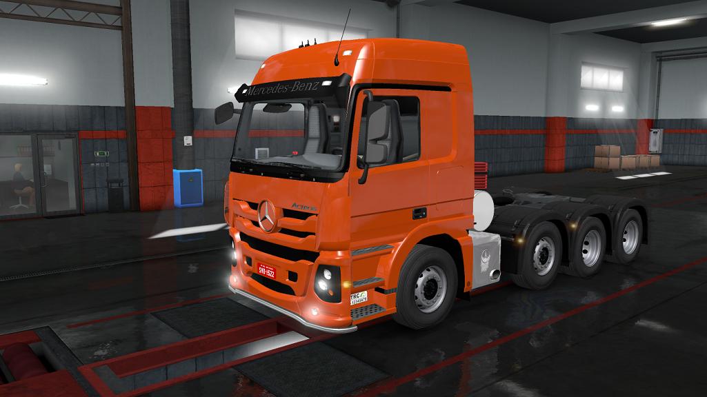 Mercedes Benz Actros 2651 8x4 Euro Truck Simulator 2 1.32.X - Mercedes Dealer - A lot of chassis - 8x4 heavy chassis - Own sound - Interior Enjoy it Credits: Souza sG |