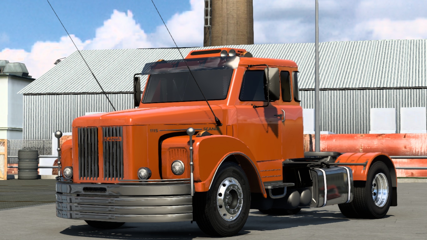 | The mod is a 1987 scania 111s from Brazil with 2 chassis and period wheels, it has features and skins