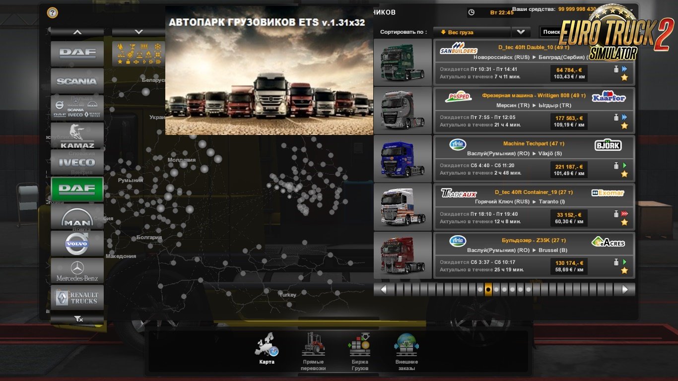 - Starting capital for the development of 1 000 000. - Trucks and cargo without damage. Currency: "EUR" "CHF" "CZK" "GBP" "PLN" "HUF" "RUR" "BYN" "UAH" "NOK" "SEK" "DKK" - In the fashion there are 47 disks and gps Garmin. Who does not like discs and wants to return the standard -change with replacement .sii files (in attachment) in folders: f_disc r_disc *GAME NEED TO START WITH A NEW PROFILE. exp_park_bonus: 5000. Adapted mod under version 1.31.х 1.32 This mod adds tuning trucks to agency orders. The mod provides the ability to ride on different machines with different skins and tuning accessories. Based on the materials: Piva AlexeyP Pendragon Tomek-GB Skins: Jazzycat, DaStig, Js Jalupanuroto, speedy143, xwildanx, Repin, TerRay, ScaniaLAD, Lorius, AJFV1998, Millsyb, Speedy66666, harry, Sky76, JE80, KHAOS-XX, RCPHiL, S-and-s, Zoso, BartvHam, Trucker2011, MaxLowe, Freddy Jimmink, Bluemanc, stewowe, Toft-N, Sparrow, DHL, indian56, radar, Josiesomething, Oswald and others. The mod was tested on maps / Mario / TruckSim / Promods / Southern Region / RusMap / Map of Romania / Russian spaces / YKS Eu Turkey. Author: Provinat Credits: Provinat |