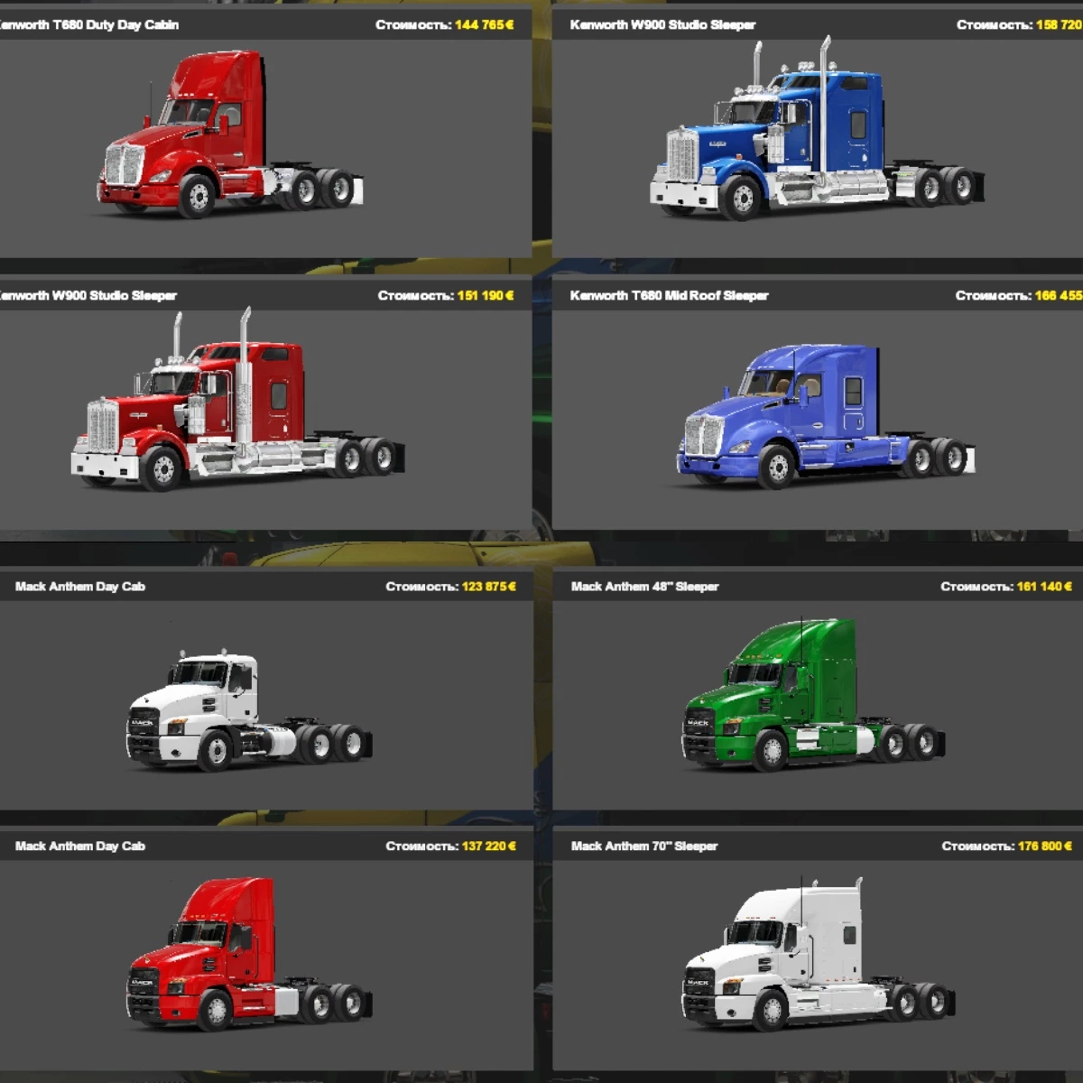 International Lonestar Kenworth T680 Kenworth W900 Mack Anthem Peterbilt 389 Volvo VNL Western Star 49x Freightliner Casscadia 2019 Registered in the gallery and in the agency’s orders. They are present in the traffic. Accessories in the cab are supported by SISL’s Megapack They are sold in the dealers ‘ salon. Credits: SCS Adaptation and revision: Provinat Credits: Provinat |