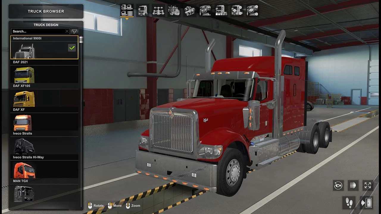 | International 9900i - high quality american truck model with own interior, sound and tuning accesories converted from ATS to ETS2 with all standards of the game. The American International 9000i Series tractor units bring a new level of pleasure to the trucking business. With a bold appearance, exceptional reliability and durability, unmatched driving performance, comfort and serviceability, these American tractors are a pleasure to drive, maintain and own.