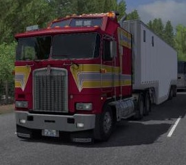 Changes in v0.96 Initial release for ETS2 Changes in v0.95 - The odometer display is now standalone. So if you have a custom Volvo dash, it should not interfere. - The headlight frames are now less meaty. - Single exhaust is now available on all chassis. Changes in v0.94 odometer display on the tachograph LCD. Changes in v0.93 You can move your head further back. And mirror brackets were shortened. They actually kinda look better now. Changes: v0.92 - Interior accessories are now back inside the cab, on the exterior view; - Hook locator lowered by 55 millimeters. Trailers are now lower, to eliminate the gap between the 5th wheel & the trailer chassis. Changelog v0.91 Lamp material was fixed. The interior shading is reworked. I have managed to brighten it up around the dash, while somehow, retaining a satisfactory look. :shock: Secondly, i changed shaders for the upholstery. From dif.spec.oclu, to dif.spec.mult.dif.spec. Wish i knew about this shader from the start. And, with all the remarks about how "amazingly optimized" my interior is, i took the liberty and replaced the 1k upholstery AO texture, with a 2k texture. Features: - 6 chassis (4x2, short 6x4, normal 6x4. One set for 90" cabs, and one for 112" cabs) - 4 cabs, based on real life counterparts (90", 90" Aerodyne, 112", and 112" Aerodyne) - Matching interiors for all cabs, 2 styles, each with several color variants. The interior models are slightly simplified compared to actual ones. - Paint schemes, based on what you'd see on real K100 trucks. - Wind deflectors & fairings, based on real life ones. - Engines by Kriechbaum. The list is minimized, because i find the regular assortment overwhelming. I included the C15 cats, Straight pipe cats, and most of the Cummins. - Transmissions. 10, 13, 18 speed eatons, 5 and 6 speed allisons. Each comes with 3 different axle ratios. Also, Allisons have a retarder, the Eatons don't. The chassis models used, are from the base game. Other parts that you might think are from the base game, indeed are. overfloater Credit for the 3D model of the engine + transmission block, goes to Harven. Credit for the sounds, and engine defs, goes to Kriechbaum. Credits: overfloater |