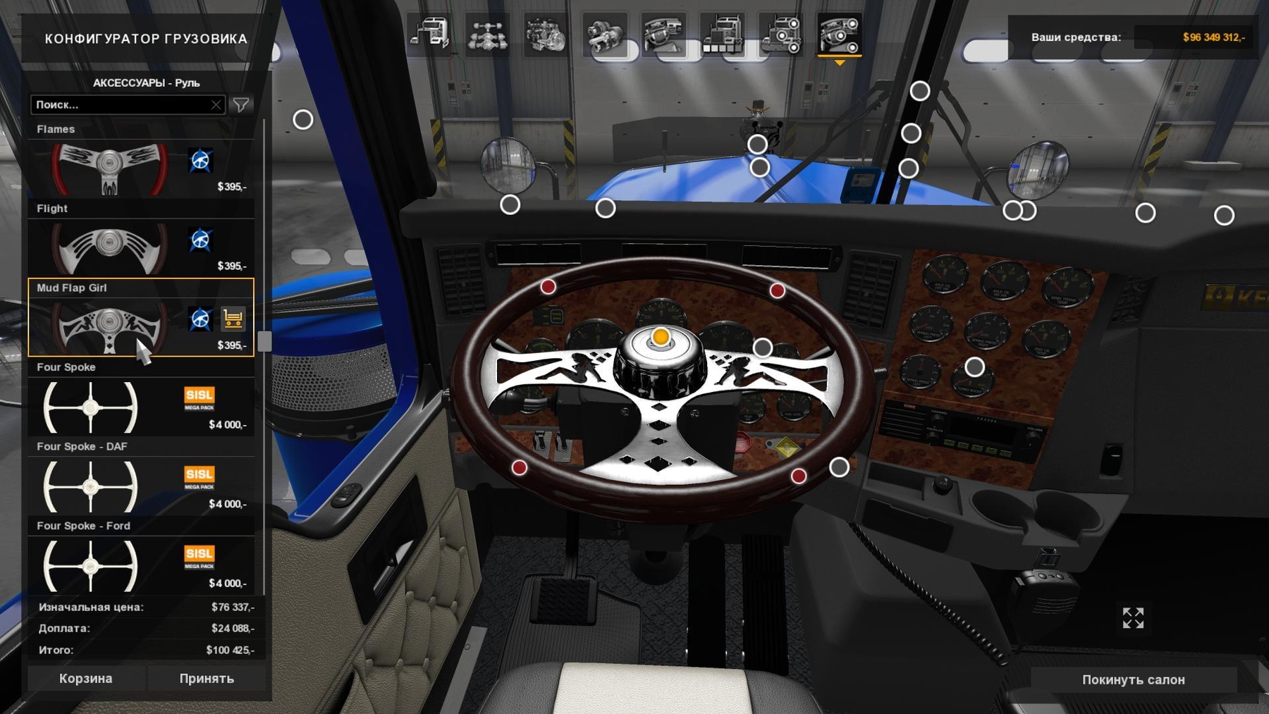 Changelog Updated for 1.32 Added cable support - Fully standalone model - It is registered starting - Purchase in the "MAN" Motor Show - 4 cab options (4 for right-hand drive) - 4 chassis (4 for right rudders) - A lot of tuning (external) - Own interior 3 types (+ right wheel) - your wheels - Own sound + new N14 v2.0 and N14c - Painted in metallic - Walking camera. - Supports DLC Cabin Accessories Virat: - 3D model, Stas556: - envelope, animation, registration, Kriechbaum: - sounds, registration of engines and transmissions, Fire-Blade: - 3ds Max modeling, Robert Bogdanov: -Texting, scanning, Gerald Hardie: - Technical support , Smith: - Assistance in updating and updating the model, Mick Brown: - Accessories, Mishanka: - Other registration, Knox: - Dashboard, TV and GPS. Credits: Virat |
