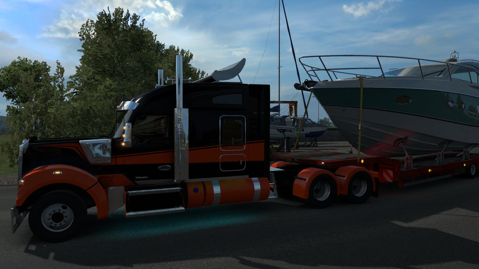 - 9 engines (5 Cummins X15 variants and 4 PACCAR MX-13 variants) with real characteristics and amazing sounds from Kriechbaum. One of the PACCAR multitorque engines (455MT) with higher torque in overdrive gears (gear ratio <1.0), for example 8L and 8H in 13 and 18 speed gears, - 13 gearboxes — 5 manual, 5 automated and 3 automatic — all based on real specifications, - the shift inside the cab will change depending on the selected gearbox and will show the correct gear layout for the selected manual gearbox (10, 13, 15 and 18 speeds), - 2 cab options - a day cab and a 76-inch average sleeping car, (3 cabs ...) - 5 chassis options — all 6x4 with various wheelbases and tank sizes, - 5 interior options, - 5 custom skins and several predefined paint colors, - the mod includes a small light package on order, so that you can fill all the light slots without having to install separate light packages, - custom made radio KB (Cobra 29 LKS) with a wobbled cord;) - the truck is available in quick work (also in heavy and oversized work), - animation of cables, etc. Test on version 1.36 Authors: Frank Peru, Harven,Yekko Yek, Kriechbaum Credits: Frank Peru, Harven,Yekko Yek |