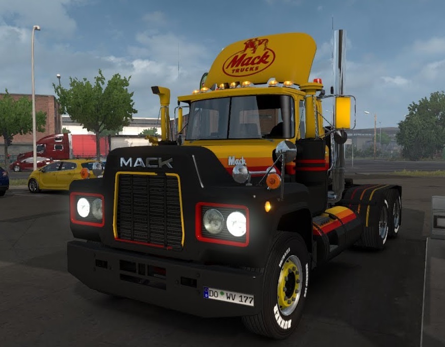 Changelog - Compatibility update for game version 1.35, - Updated models and animations to latest format version, - Updated wipers definition, - Added support for hanging toys from 2018 christmas event Real dimensions based on Mack specs, - Real engines and transmissions with torque curves, ratios and other parameters, - Fully animated detailed interior, - All standard SCS truck features, like advanced coupling, trailer cables, etc. - Detailed models based on many reference photos (thanks to Trayscapes and Google images), with reasonable triangle count which should not kill your GPU ;), - Beautiful engine sounds made by Kriechbaum (6v92, Mack E6) and recorded by Trayscapes (Mack E6), - Original paint jobs made by Lucasi, Pauly and me (not my wife this time, she's babysitting currently ;), - No errors, no warnings and hopefully not conflicting with other mods (nah, there is always a poor mod that will break things ;) but not this one!), - Next Gen Scania paintjob system (all skinnable parts have their own templates, except air cleaners, they are on the cab template), - Currently only R600 hood with day cab. About Maxitorque trnsmissions: I don't know of a shifter that will let you use some transmissions like they are supposed to be used (like TRTXL 1070 with 12 speed forward and 5 reverse). Please let me know if you came up with a custom shifter layout that is not very tricky to use. Some answers to common questions (sadly mostly negative it seems ;)): - It will currently not work in TruckersMP (unofficial multiplayer mod) but who know what are their future plans ;), - I will not add engines which were not used in this truck or which sound like broken washing mashine ;), - I'm not taking requests for mods or skins, - I will keep updating the mod with more features but don't expect frequent updates (apart from bug fixes) Included skins: - Pauly - "Rainbow Mack", "Red Velvet", "Mack Multi R" - Lucasi - "Retro Stripes Mack R", "Mack R Vintage Skin" - Harven - "Two Colors", "Road Warrior", "Three Stripes Metallic", "Value-liner" - Harven, Kriechbaum, Pauly, Lucasi, Trayscapes, RTA. About RTA commitment: The mod uses parts from RTA's Mack Superliner interior - namely: interior upholstery and interior cab body models. The rest of the interior is made from scratch, this includes: dashboard, all gauges, switches and knobs, labels, steering wheel with column and attached sticks, gear shifter, heater and seats, roof vent hatch, floor mats and pedals. All animations are also made from scratch. Not a single texture from the Superliner is used. I greatly reduced the number of triangles in the interior upholstery and interior cab body models. Credits: Harven, Kriechbaum, Pauly, Lucasi |