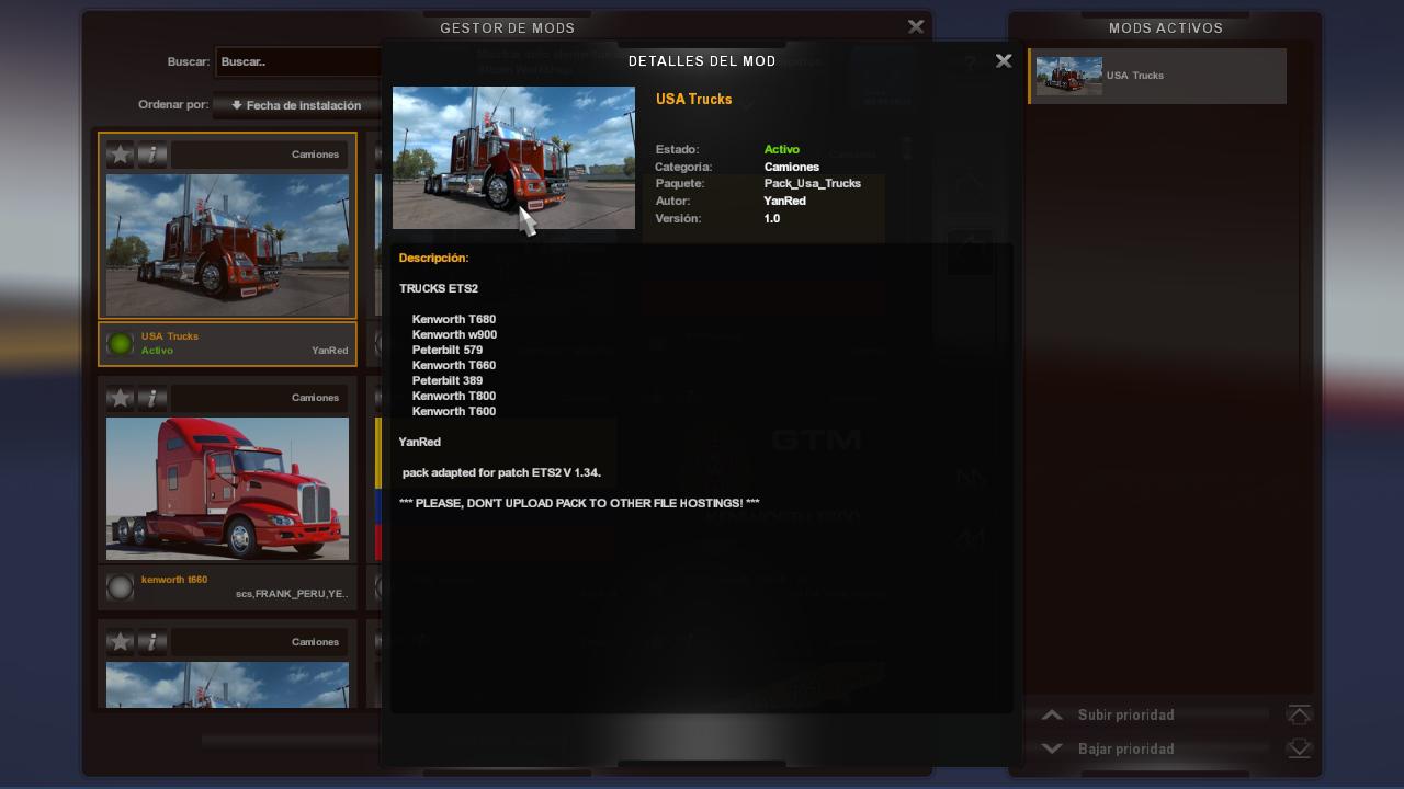 Pack Adds In Game, Traffic And Quick Job All Trucks From Ats: Kenworth T680 Kenworth W900 Peterbilt 579 Peterbilt 389 Version Of Trucks From Term99 Kenworth T660 Kenworth T800 Kenworth T600 Test. Ets2 V 1.34 Buy : DAF Credits: YanRed, SCS, mario1961, term99 |