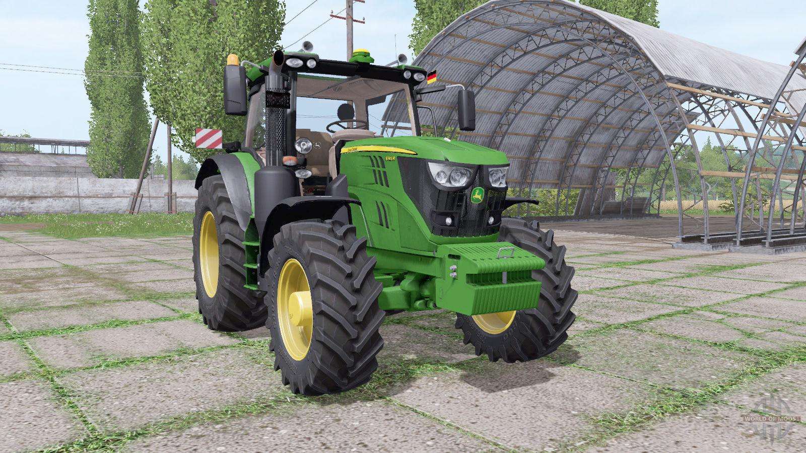 Farm tractor John Deere 6145R for Farming Simulator 17. The value of the tractor in the game, €: 180900 Maintenance of the tractor, €/day: 165 Engine power, HP: 192 Fuel tank volume, l: 300 Tested in game version 1.5.3.1