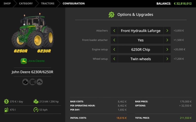 JOHN DEERE 6250R V2.1 for Farming Simulator 17