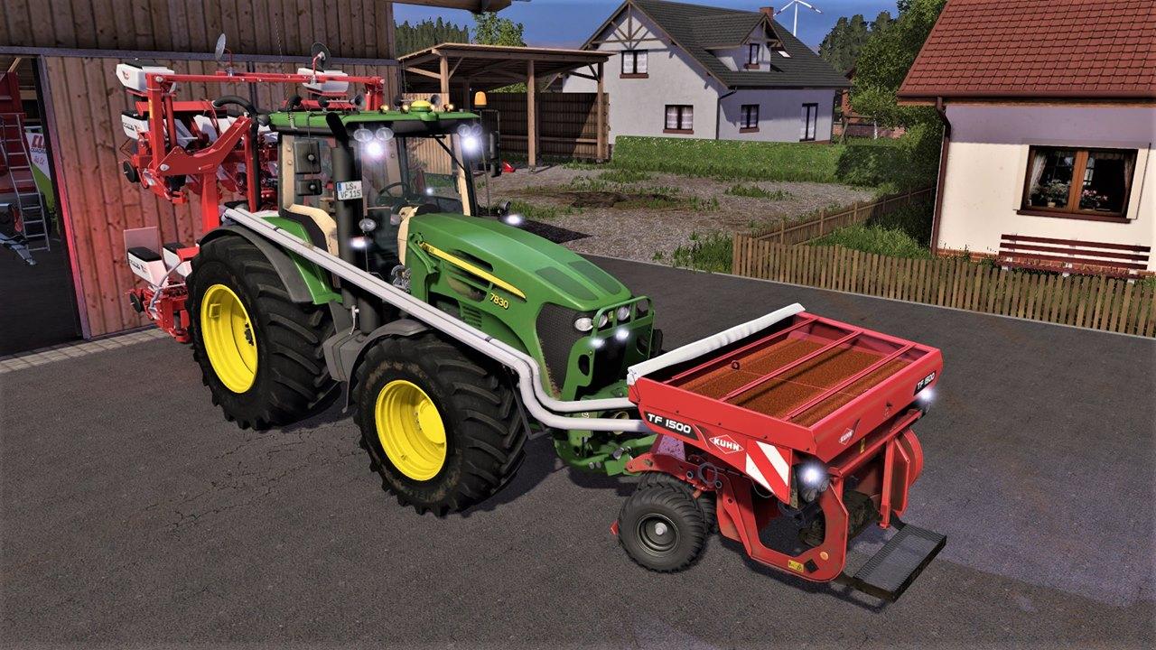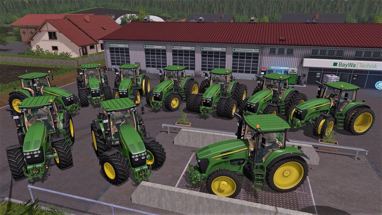 JOHN DEERE 7X30 SERIES V1.2.0 for Farming Simulator 17 This tractor, offers three different types of motortypes. Additionally you can choose by buying the model you want, ist to add several configurations, like a frontloader, 10 different wheeltypes, warningsigns, seedpipes, GPS or Terminals(or both), or little changes like horns on the roof or additional lights! After purchasing the vehicle the user is able to configurate his tractor in the cabine. He can decide wheter he wants to have front mudguards or not, or a additional RUL. Functions like wipers, change between toplights and normal lights, daytime light, opening door and window or the moving oft he steeringwheel, are self evident! Tipps: Thanks to everybody supporting me, my work, and my page. Without you nothing could have happend! Thank you very much! Modell: Sotillo ; Ghost_CO ; StrModding ; TechMod a.s Nefarius Credits: - |
