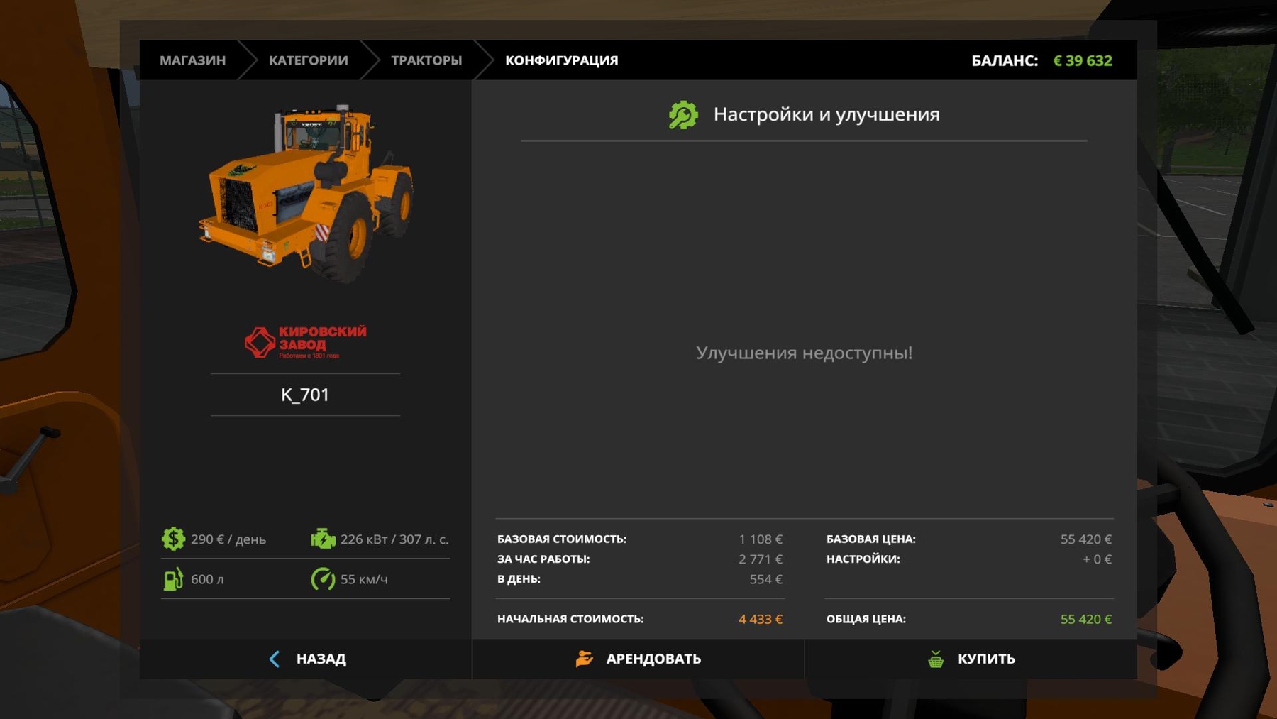 Price 55420 Service 290 Power 307 Speed 55 Buck 600