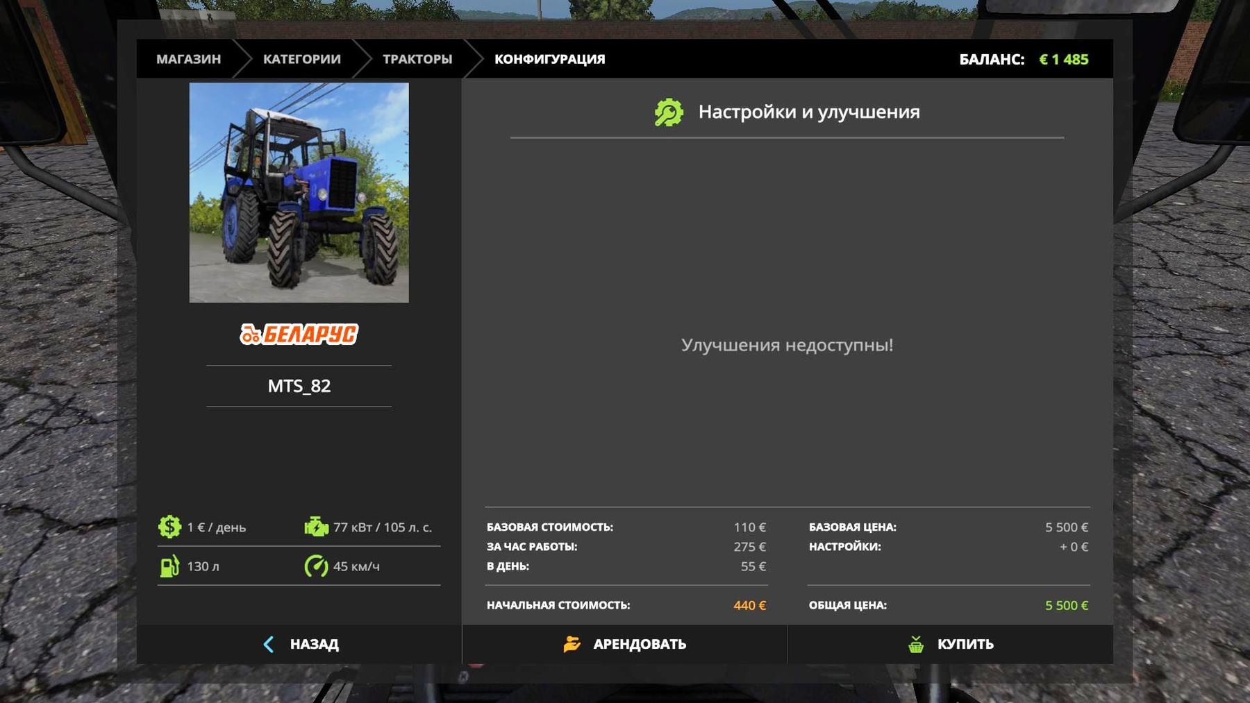 Price 5500 Service 1 Power 105 hp Speed 45 km / h Tank 30 l