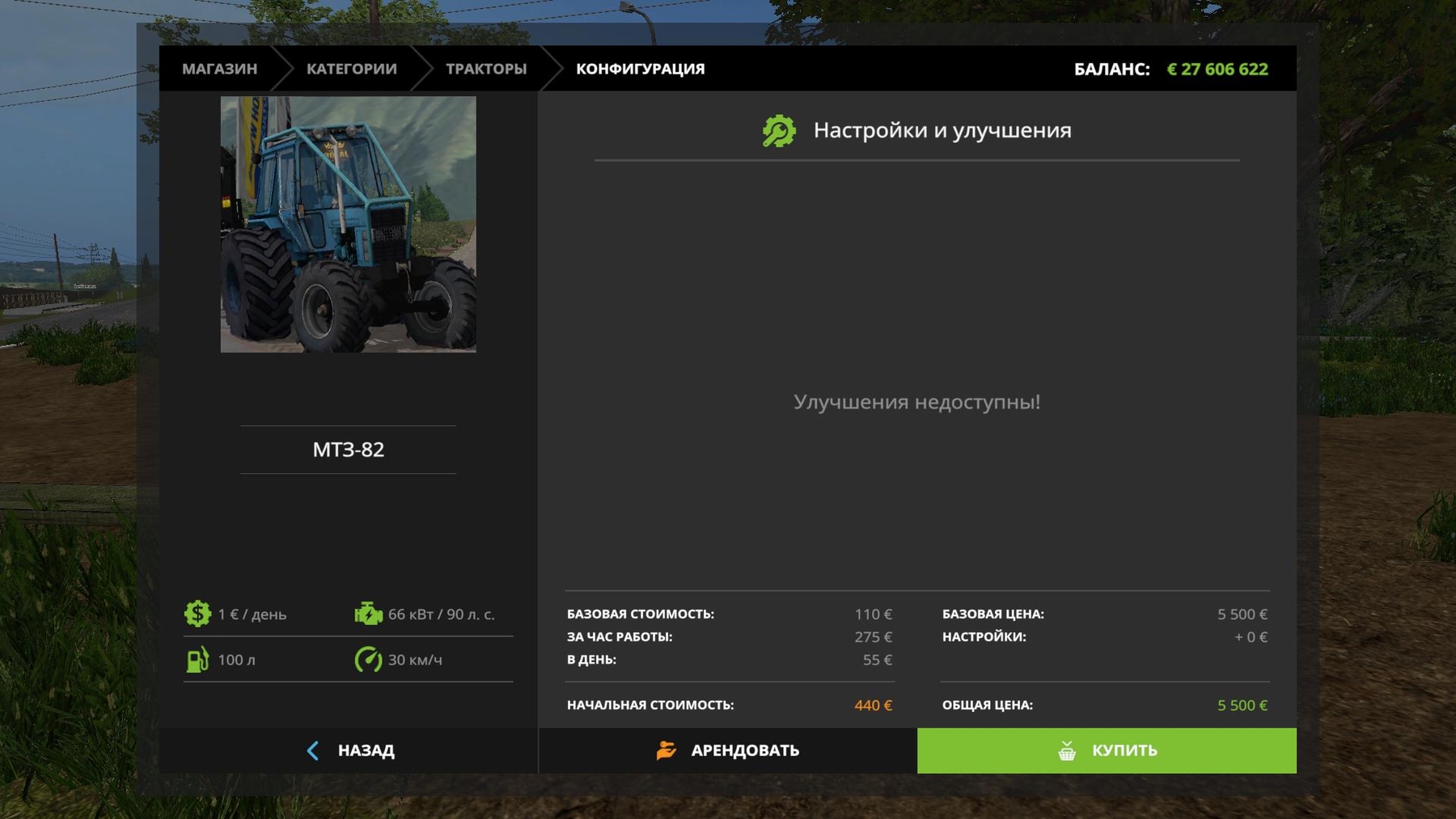 Price 5500 Service 1 Power 90 hp Speed 30 km / h Tank 100 l