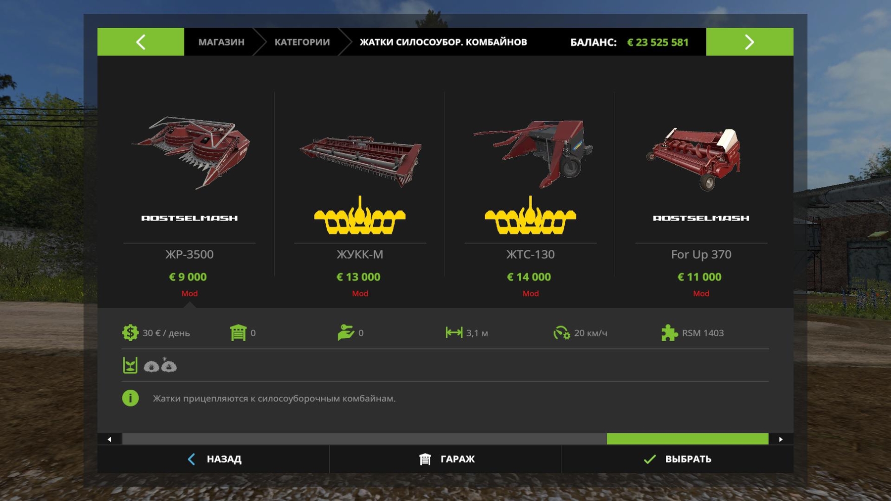 Forage harvester on caterpillars The set includes 4 harvesters for different crops Price 76000 The volume of the bunker is 12000 l Credits: AVSR, Kuzia94 |