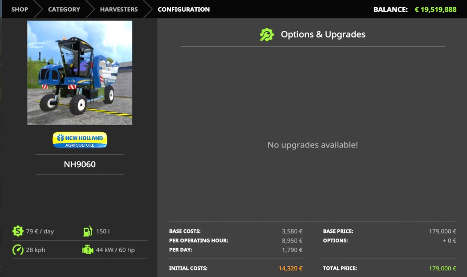 New Holland 9060L harvest grapes for Mining & Construction Economy map FS17. Credits: dufffr |