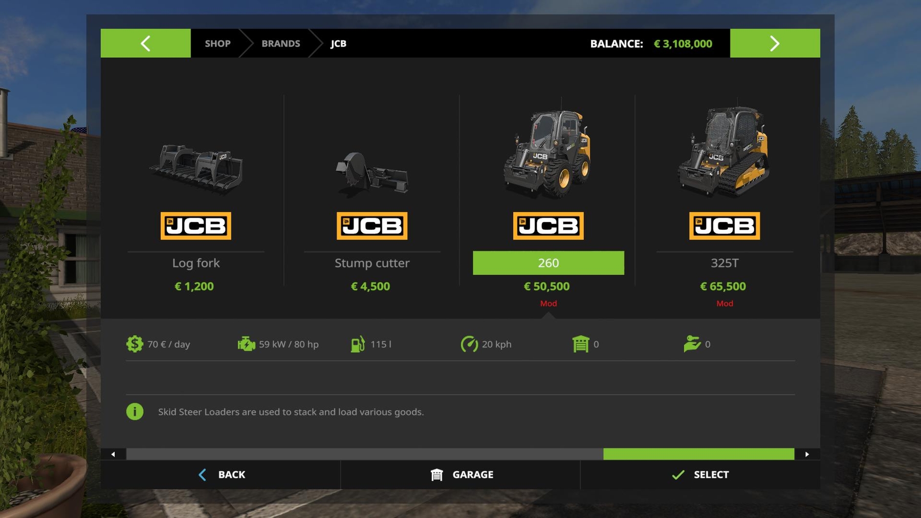 JCB Skidsteer with counterweight, you can adjust the counterweight outside (max. 990) + JCB 325T: JCB 260: Credits: CRYSTY, Giants |
