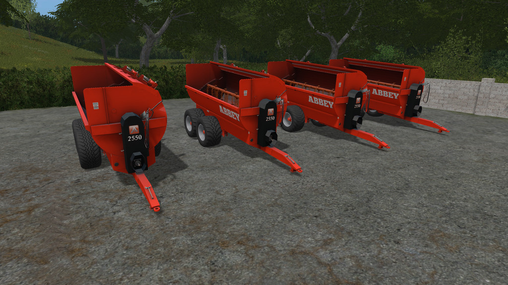 ABBEY 2550 MANURE SPREADER FOR FARMING SIMULATOR 17 Price: 9850 € Abbey Machinery produces the most complete range of side spreaders on the market with sizes from 6 to 15.5 cubic meters Credits: CDModelz |
