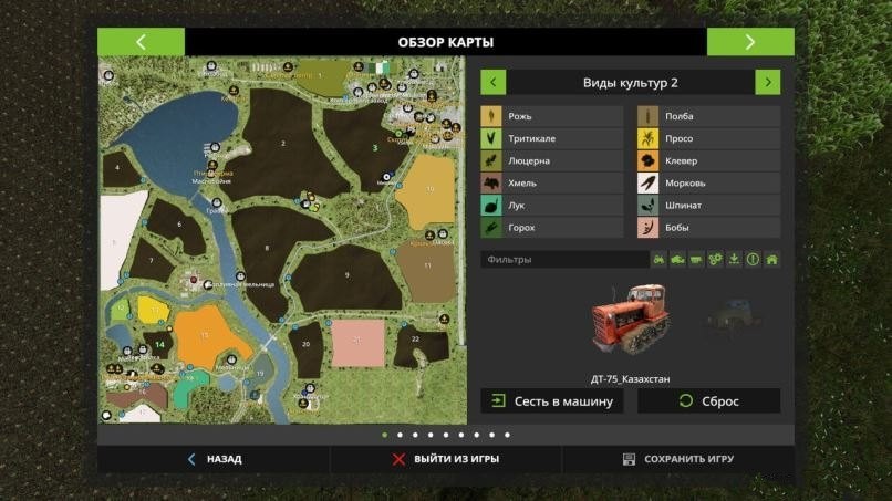Standard animals. On a single version there is construction (garages, greenhouses). On the map are standard cultures + oats. rye. a flock. triticale, millet, alfalfa, clover, hops, carrots, onions, spinach, peas, beans + apples, pear, plum, cherry, 2 grape varieties, honey, + compost, sand, gravel. Cabbage, tomato, pepper, eggplant, strawberry are greenhouses. Sand, gravel and coal. Factories: a sawmill, a sugar mill, a mill, a dairy, a brewery, a butter mill, a bakery, an oil refinery, a cannery, a winery, a fuel factory, an apiary, a meat processing plant, boards + pallets, chips, pallets, dairy (ice cream, condensed milk, kefir) (sugar, powdered sugar, and lime), a mill (wheat flour + barley, flour + production on pallets). Fixed a bug in modDesc, in which the map did not load. Credits: - |