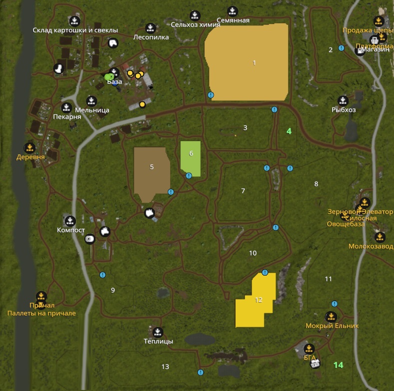 There are a lot of hangars and garages on the base, all of them with functional doors. There is a store of potatoes and beets, hay and straw,