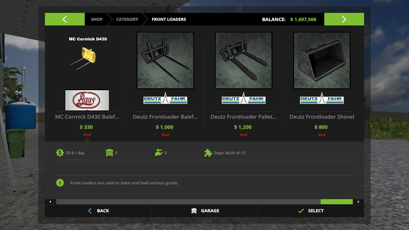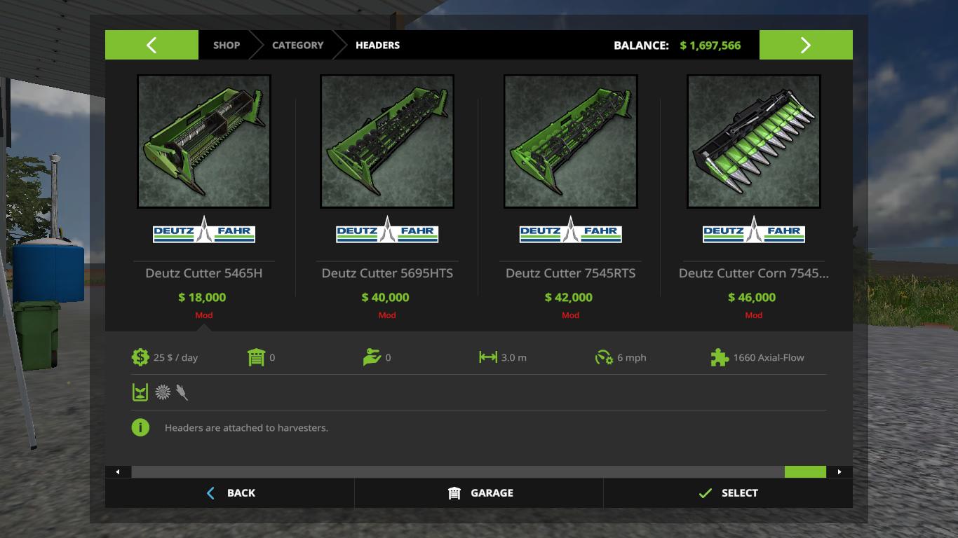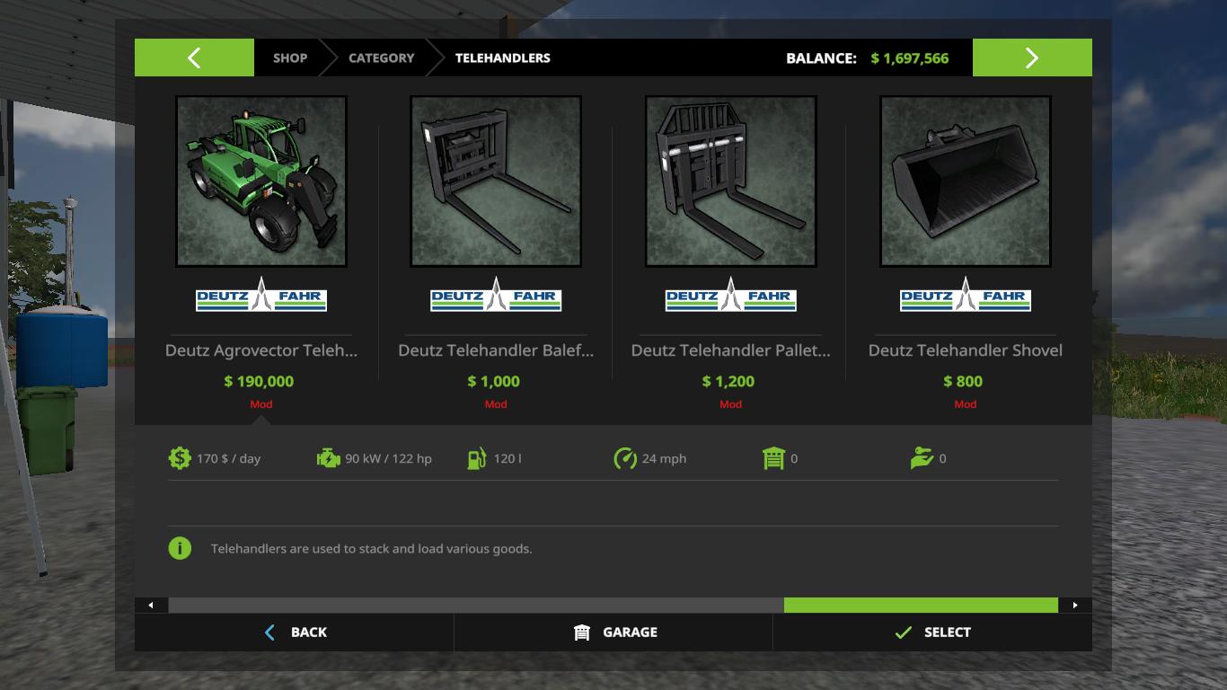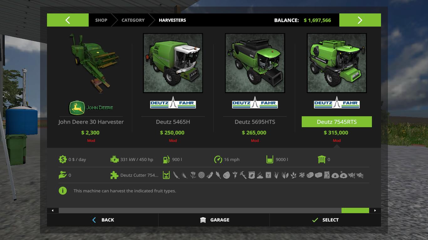 Here is the original Deutz Fahr technique from Farming Simulator 2011 and 2013, converted into Farming Simulator 17 In the bag you will find 3 combines, a telescopic loader with an exciter, 8 tractors and 4 reapers. Credits: Giants/Serge44/Hugo94FR |