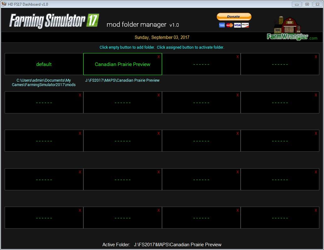 Eliminate game errors by putting each map and it's mods in it's own folder. FS17 Mod Folder Manager makes it easy to manage these folders. Free to use forever. Free updates. Runs on any version of Windows. VirusTotal scanned. Report available on web site: farmwrangler.com