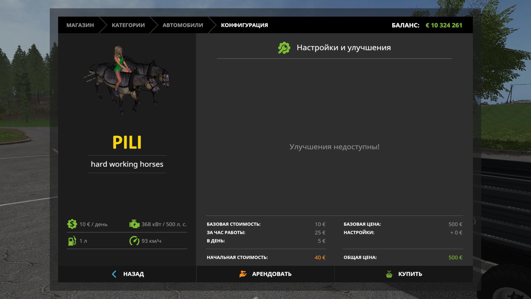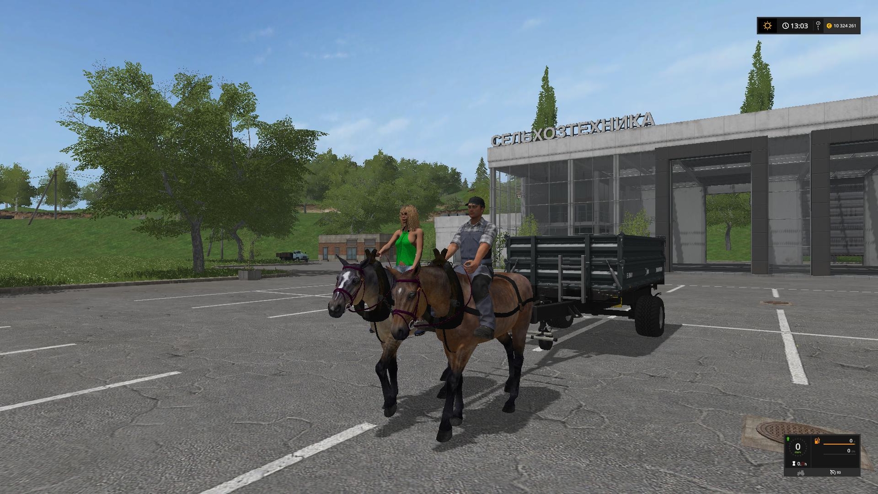 After installing the mod "Hard Working Horses" in the game will appear just a couple of horses. On one horse you will sit, and on the second the beautiful girl - the assistant. There is a trailing. And this means that behind the horses you can attach a trailer, or other equipment that does not require the presence of hydraulics. Very cool these horses look with a trailer from the tractor Credits: PILI |