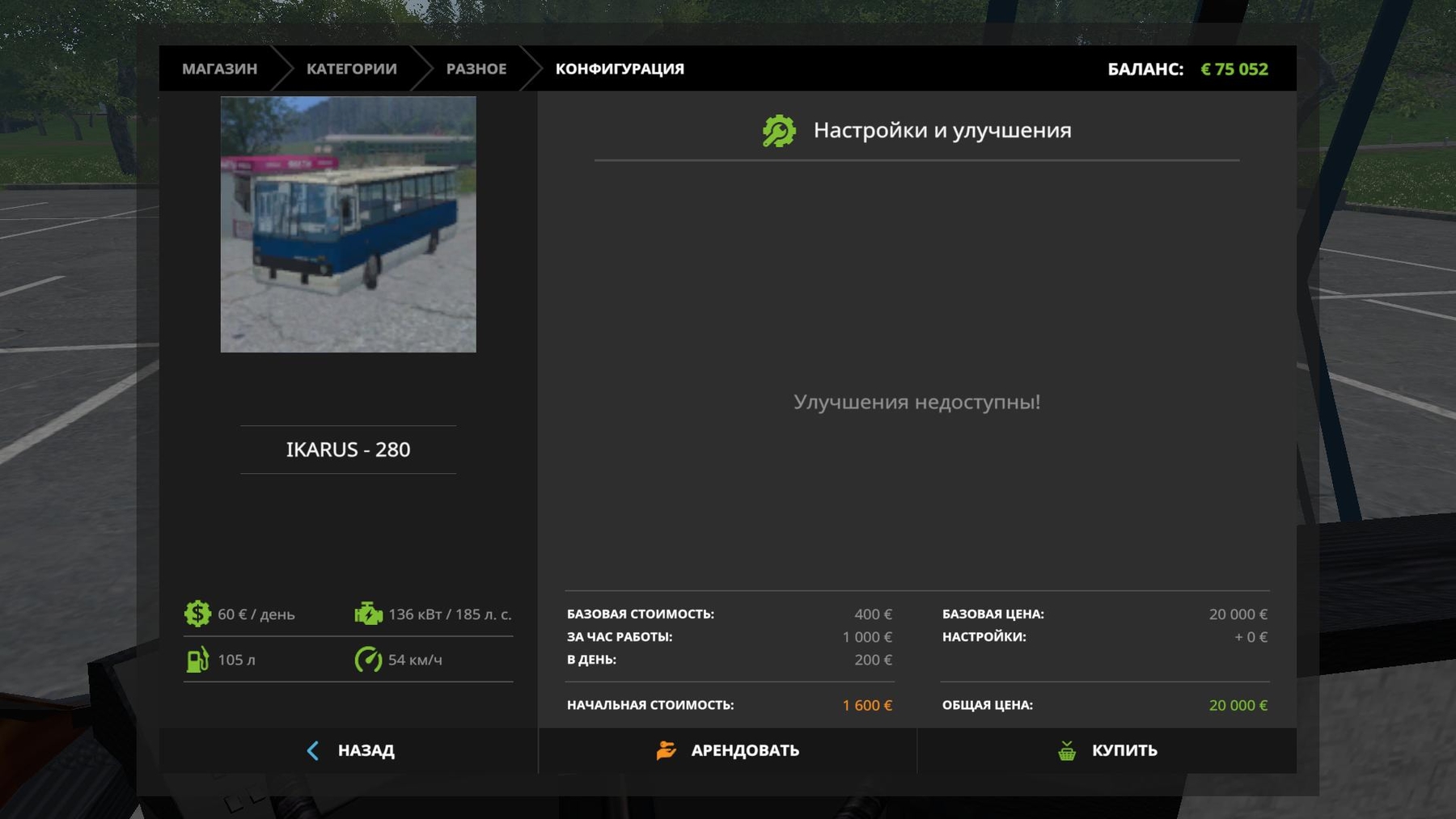 Price 20000 Service 60 Power 185 hp Speed 54 km / h Tank 105 l