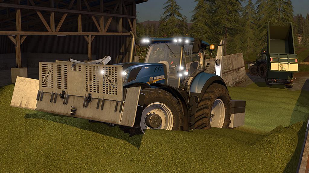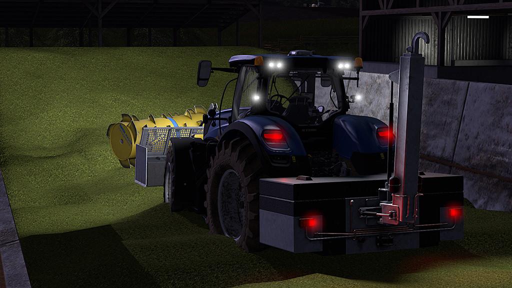 Use the hook of the Röwer back weight to pull tractors up the silo, therefore attach the Röwer front weight to the tractor.