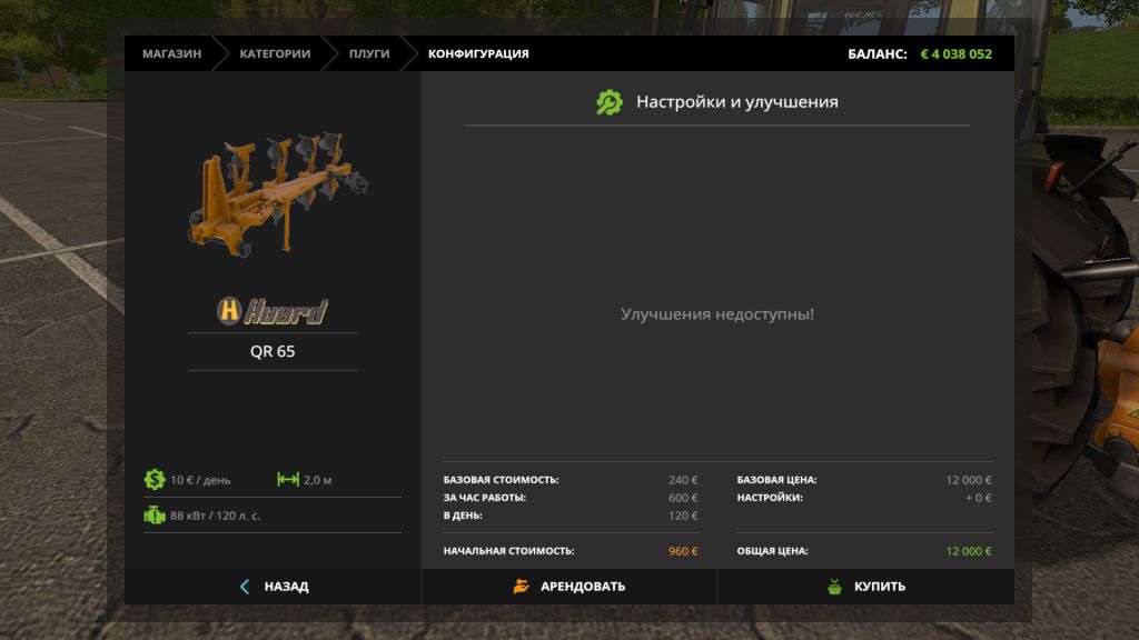 Model: QR65 Price: 12000 € Maintenance: 10 € / day Working width: 2 m Required power: 120 hp