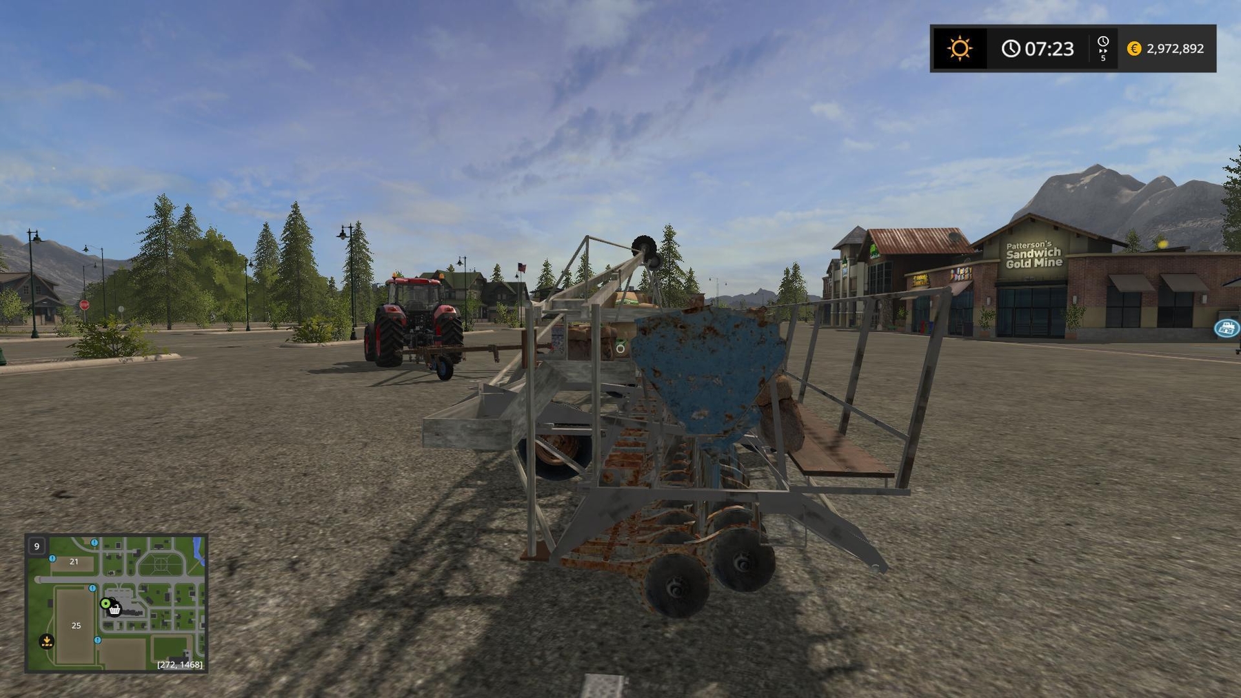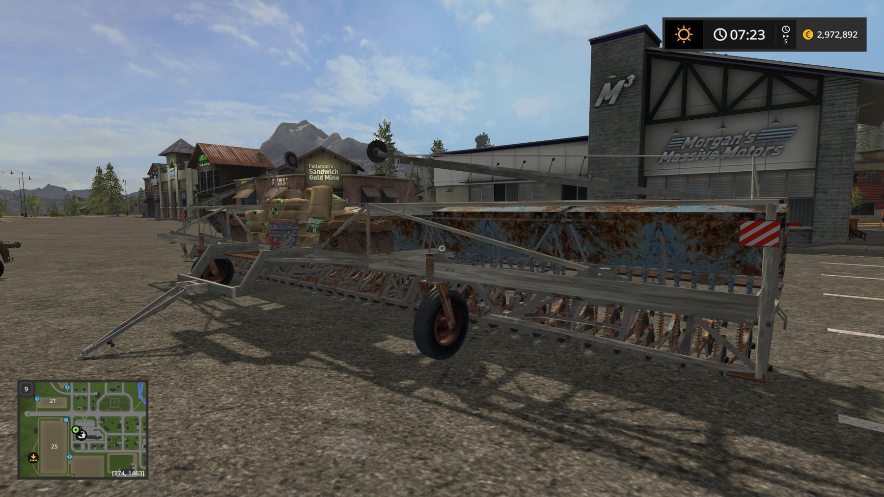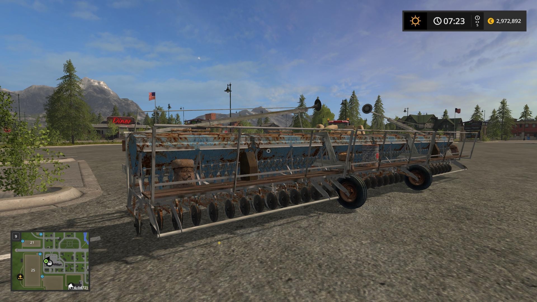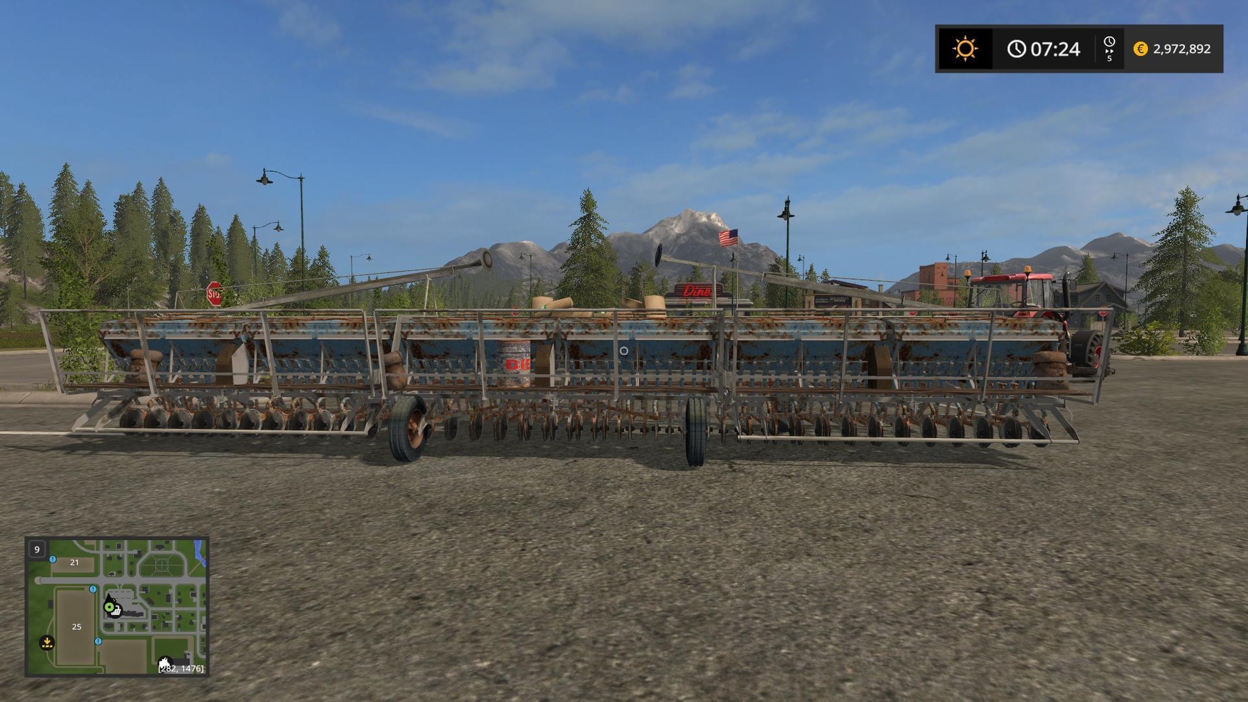 Seeder trailed with fertilizer application. Amount of seed hopper: 6900 liters, fertilizer hopper: 3550 liters. Working width: 9 m. Animation of particles of earth and dust, washable. In the kit is also a folding tow hitch. The log is clean.