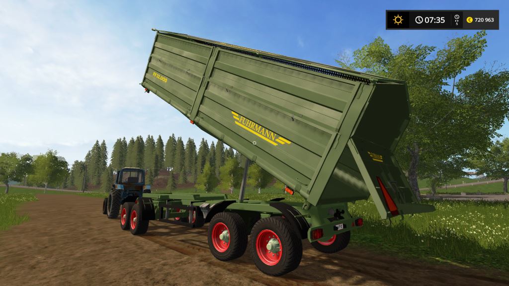 Fuhrmann 4 Achs 3 Seitenkipper FF32.000 Umgeskinnt on originals Fuhrmann color and inscription or type designation. To change standard LS17 wheels fitted me Standard red rims and fitted with wheels color choice.
