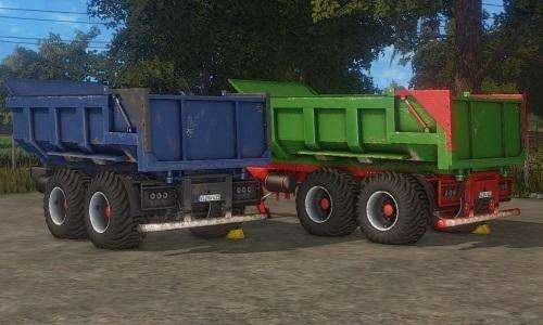 There are two trailers in the set (blue and green). Capacity: 18500 liters, required tractor power: 150 l / c. Standard cultures are transported. Animation of a support rack, shoes, a floating wheeled cart. Lighting equipment, washable. The log is clean! |