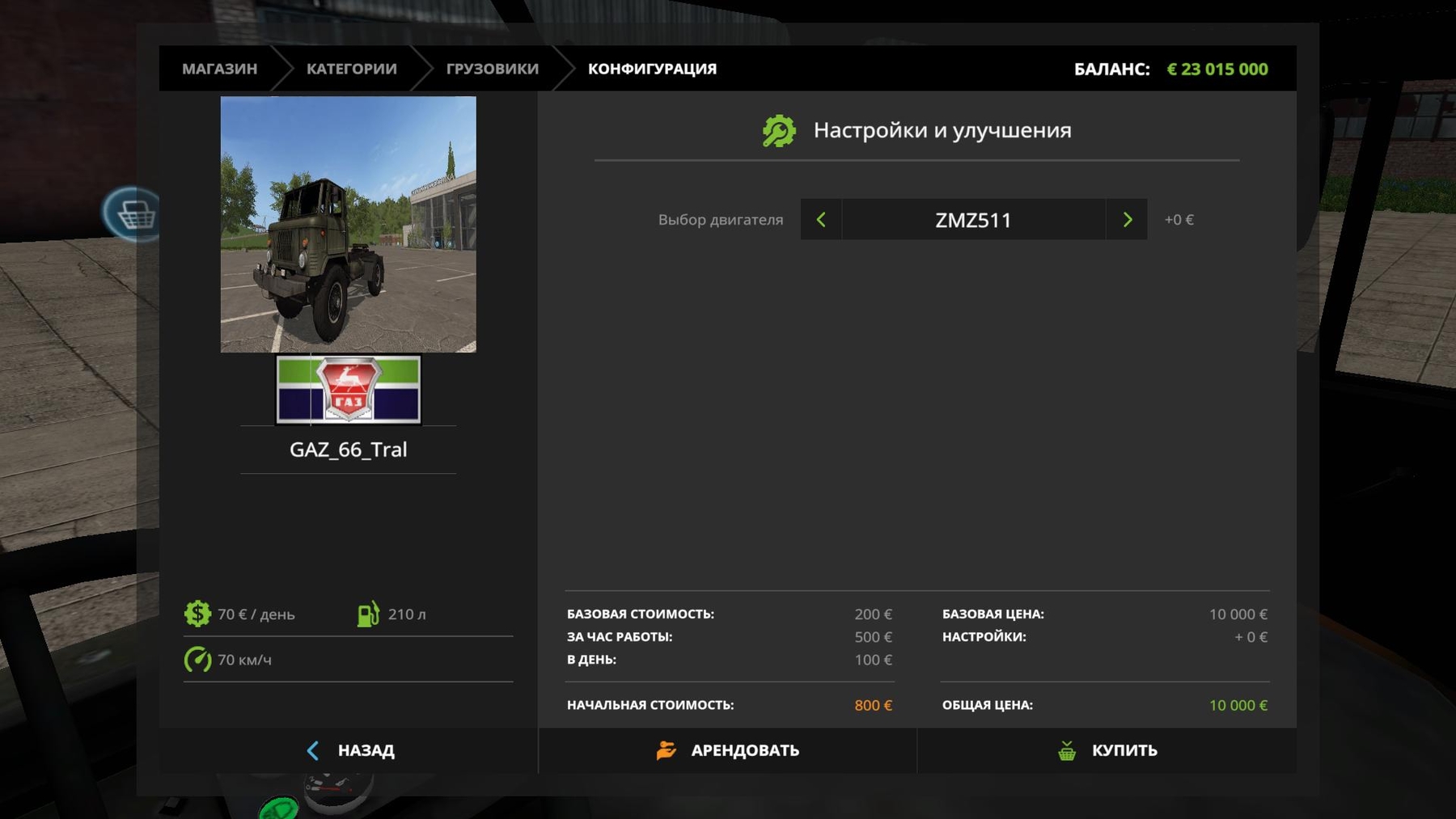 There are 3 engines to choose from. The doors open, the cabin rises. Mirrors are adjusted by the mouse. Speed: 70 km / h. Cost: 10000 The log is clean.