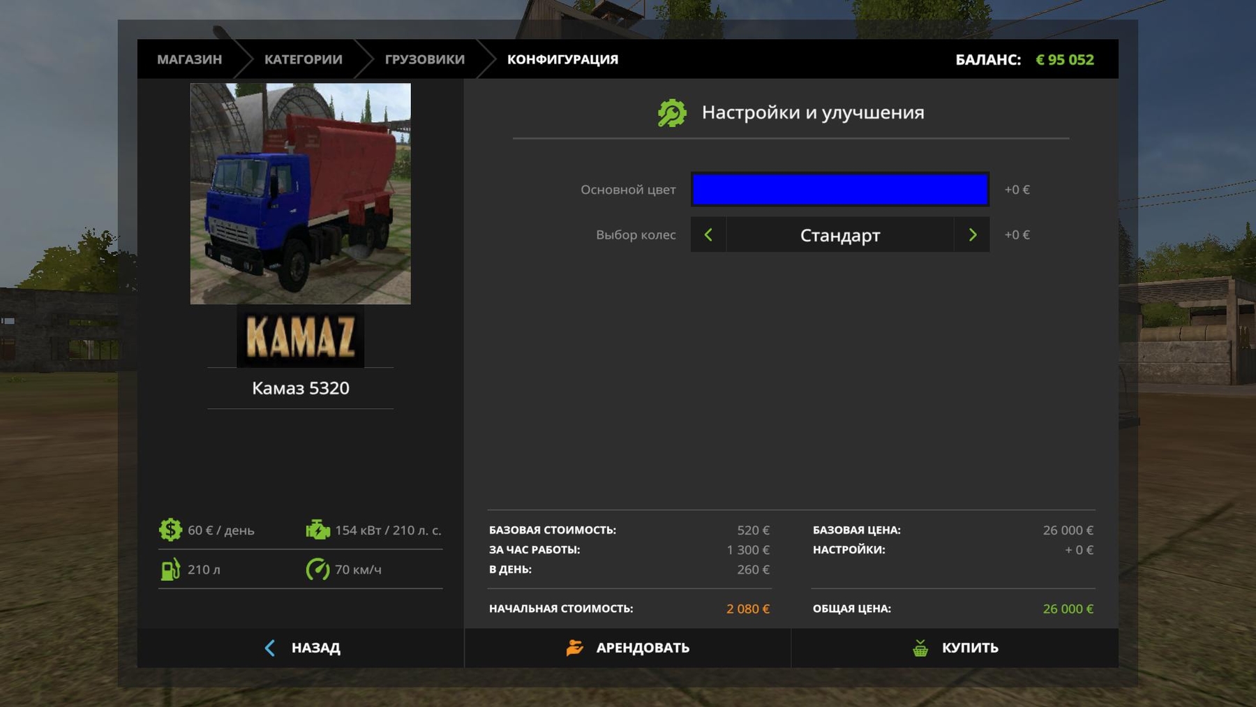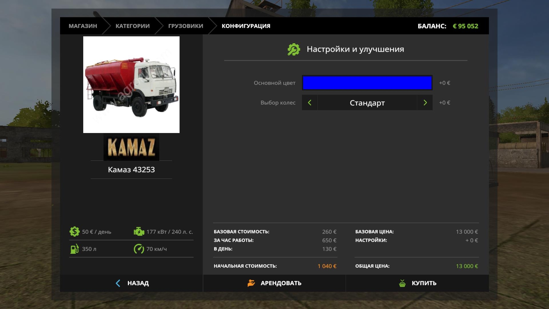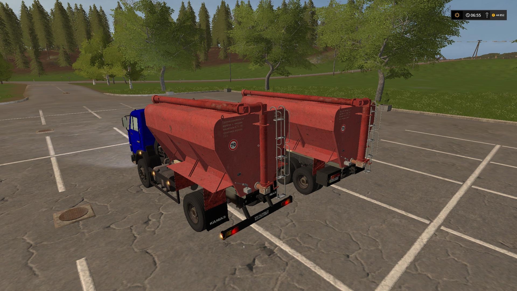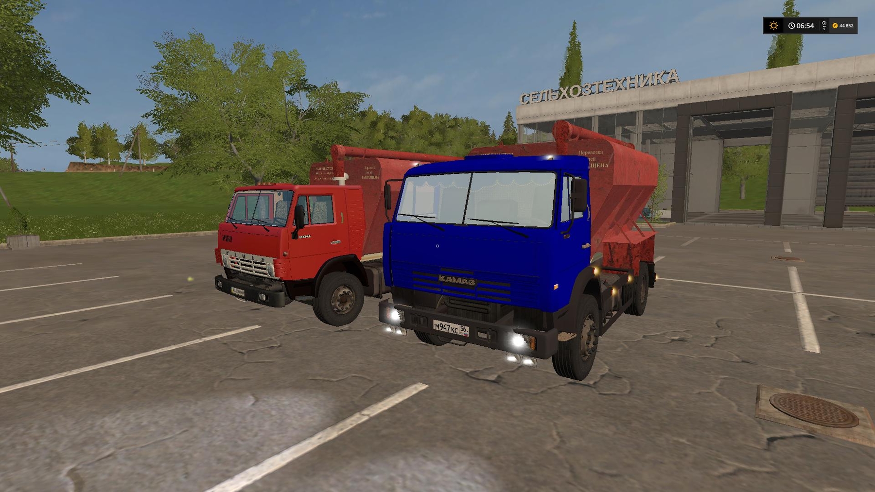 KamAZ 43253/5320 (7500 liters Max power - 240 hp Maximum speed - 70 km / h. Speedometer, tachometer, fuel gauge, water, oil, battery, mirrors, color choice, mud flaps animation); KAMAZ-5320 (8000 liters Max power 210 HP Max speed 70 km / h. The doors, speedometer, tachometer, fuel gauge, water, oil, battery, headlight and turn signal indicators, mirrors, color selection); SZAP-8357 (10500 liters). They transport seeds and fertilizers. Open hatches, lights, trailed, traces, dust. Wash them. Test for version 1.5.1. Credits: DjafDED |