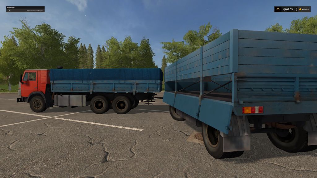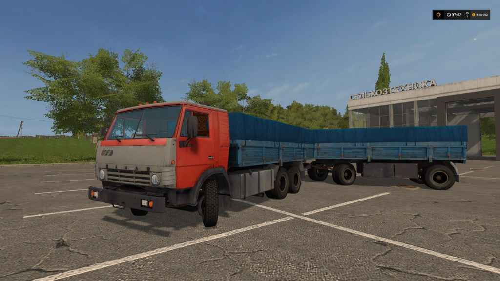 Truck with a trailer The device is animated with illumination Animation of the driver Dust Shine Awning
