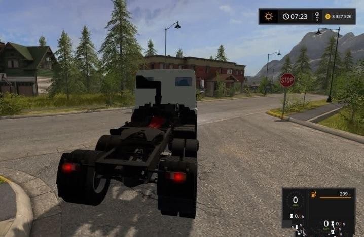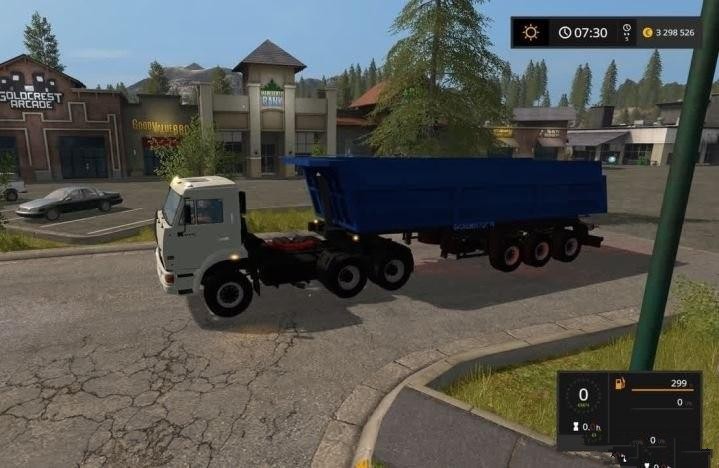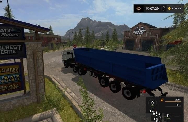 Power - 300 hp, Max. the speed is 100 km / h. There is animation suspension, turns cardan. Working lighting equipment. The instrument panel is working: a speedometer, a tachometer, and also turn signals and a main beam. Mirrors. Trailer: volume - 40 000 liters, Transport: all standard crops and loads. Unloading back. Credits: VovKa_WinSK |