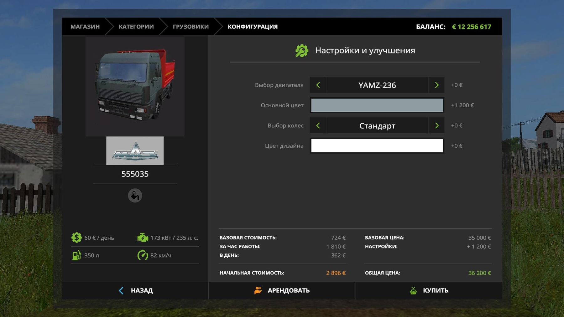 Choice of engine, wheel, color and design Transport all Body volume 12000 l Price 36200 Credits: Pira Metr |