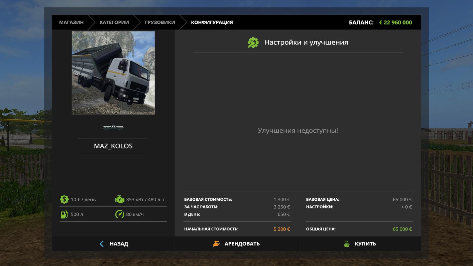 The volume of the body and the trailer is 30,000 liters each. Speed: 83 km / h. The cost of MAZ itself: 65,000 Price of the trailer: 65100 There are flaws with the unloading. Fixed bugs with the texture. The log is clean.