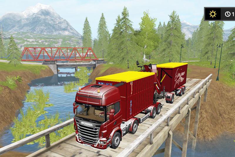 As You understand, it's a truck for billet chipping, engine power of 500 HP, max. speed 130 km/h, the volume of the main body 24500 liters, it is possible to carry all standard cultures, but created it under the chips. Included is a special device crusher is a manipulator, which is hung on the rear truck, the manipulator need to throw the logs into the crusher, and the chips will flow into the trailer. Included also is an extra trailer for 44500 litres. When buying at the store on the truck you can put a more powerful engine, max. power 730 HP, you can choose the design, a secondary color design and the main body color. Credits: : dimanix |