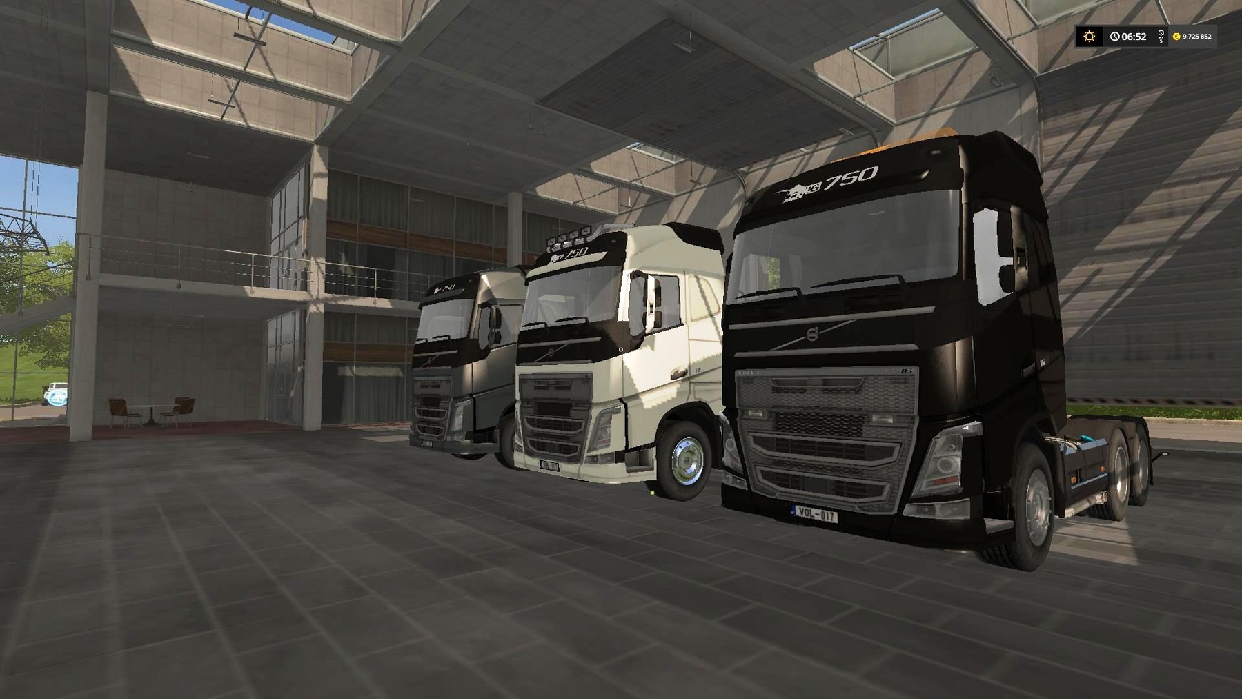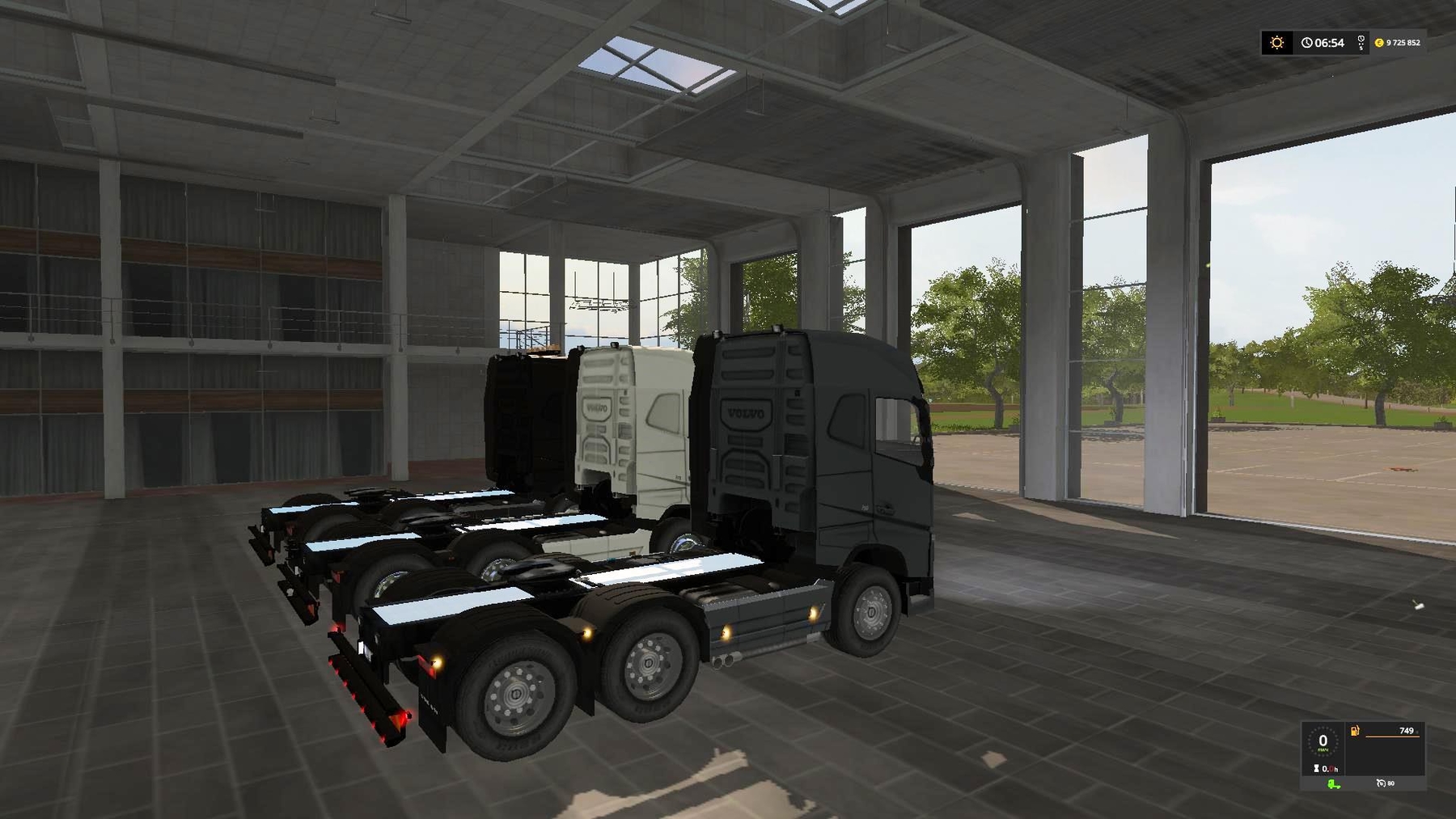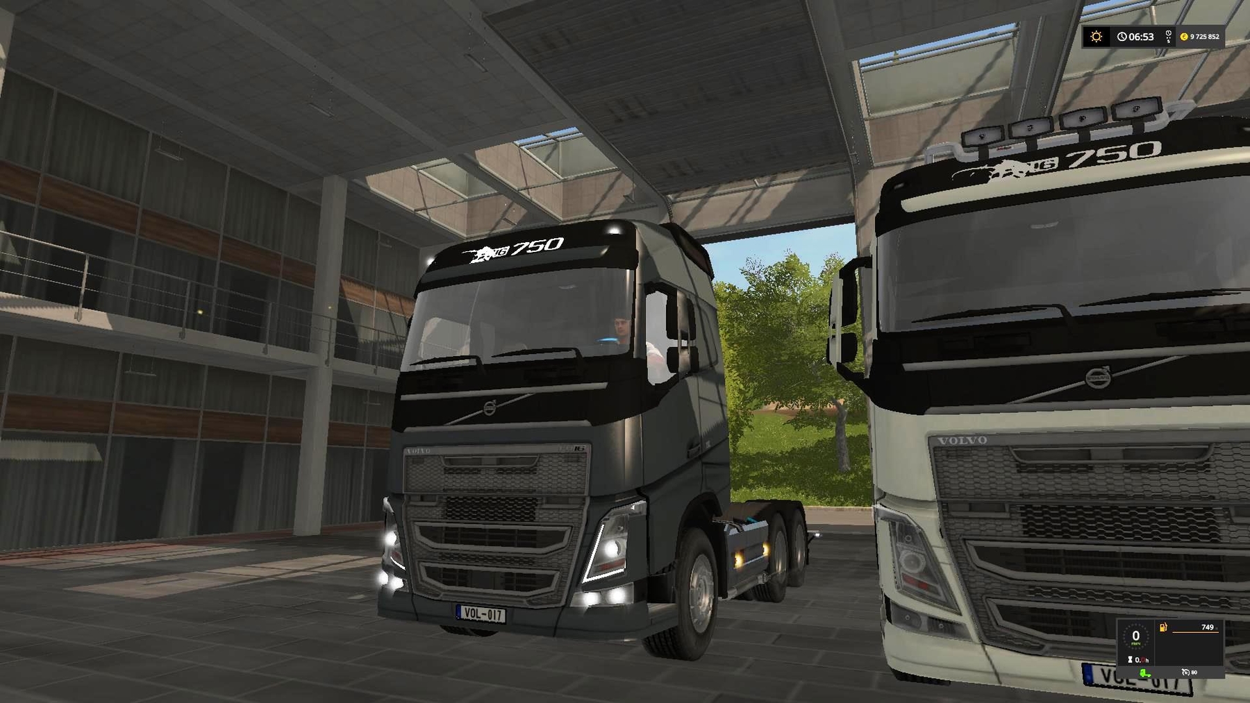 The Volvo FH16 750 (Short wheelbase). This is the top model of the FH series and is equipped with double rear axle and interactive Indoor HUD. The Volvo can of course be used with all saddle trailers. It is equipped with adjustable mirrors, a mobile semi-trailer and a rain sensor for the windshield wipers. Furthermore, the interactive control (IC) is available and offers various settings for a real vehicle feeling. The gearboxAddon is fully supported. The active gears (0-12, R1, R2) / Auto (D, N, R) settings are displayed on the LCD in the car. The Strobo-Binklicht front is delivered with the light beacon and can be dismantled by hand if necessary. Credits: Alex2009, Manuel Leithner, GtX |