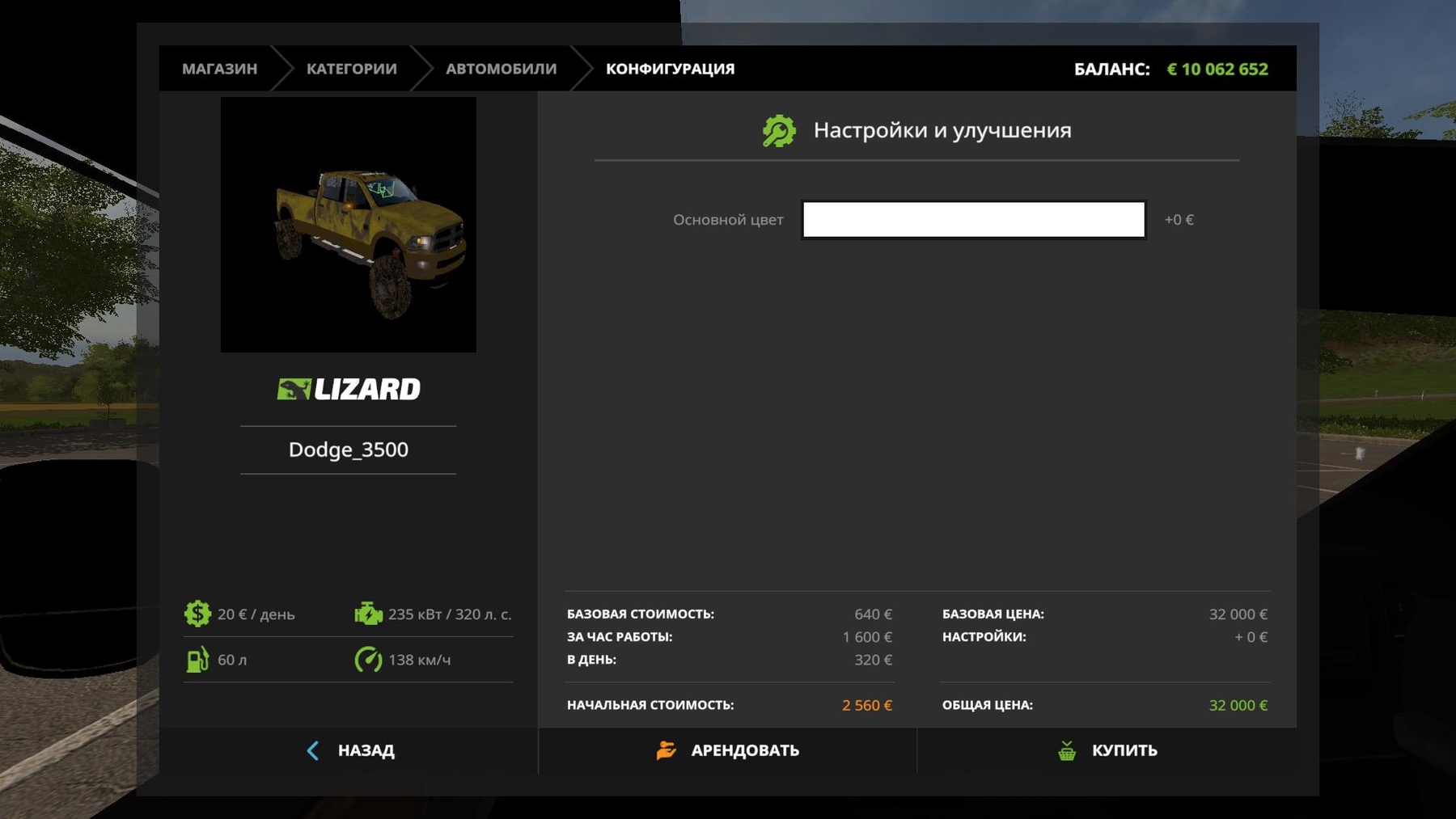 Price 32000 Service 20 Power 320 hp Speed 138 km / h Tank 60 l Credits: Dylan (Parts & misc) |