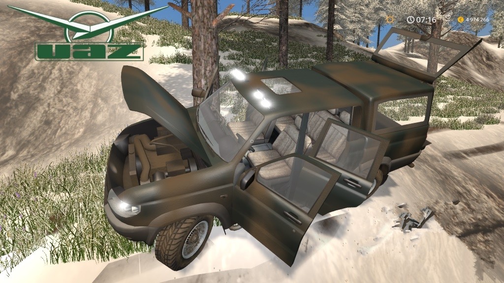 Mod "UAZ Patriot Pickup v1.0" for Farming Simulator 2017 - Max. power - 128 hp. Max. the speed is 150 km / h. Opening the hood, doors and trunk, lighting equipment, speedometer, tachometer, fuel meter, headlight and turn signal indicators, bought kung and chandelier, disc color selection, dust, traces. Washes. Test on version 1.5.3.1 Credits: Dang |