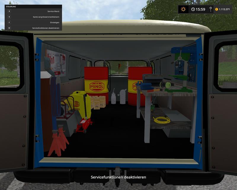 UAZ Service from VEB Kombinat Fortschritt Agricultural Machinery. With the UAZ service vehicles can be configured, it is also installed a tank trigger. - Doors in front right and left Animated werik, Silak_68, Shippy74, Koral, IDimm, 4X4, Arseniy 1998, -=FaRMeR=/ Credits: - |