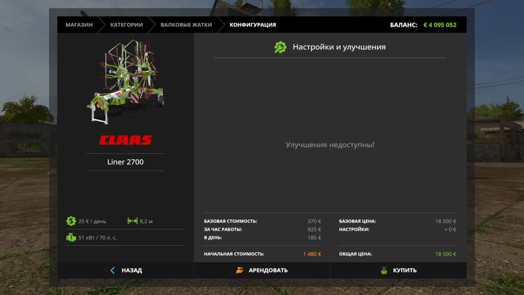 Roller header The price is 18 500 euros Service 25 euros Width 8.5 m Required power 70 hp