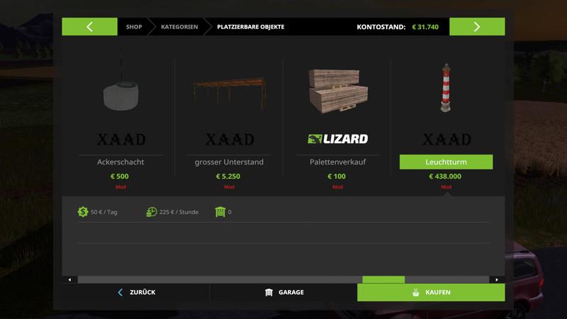 lighthouse Can be placed with function Beacon switches on at night. Income per hour 250, - Daily cost 50, -