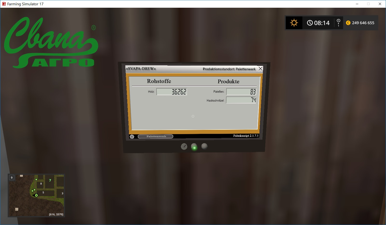 We present you our first mod of the planned line of "Industrial fashion "SVAPA agro"". This is a factory pallet. To work factory pallets will need the following resources: 1. Wood. Production: Empty pallets and sawdust. Pallets you can sell at the point of sale of pallets (included in Mod) or to use in our mod from the production line. The mod is compatible 100% with all of our mods. Verified to work on the standard maps FS17 (in the screenshots the map of Sosnovka). Compatibility with other mods will be checked periodically. FORBIDDEN: changes and additions in this mod. Posting on other websites is permitted only with original link and the original screenshots. Special thanks to marhu and kevik98 for scripts. SPECIAL THANKS Blacksheep-RC-Devil for help and advice. Credits: Svapa-Agro |