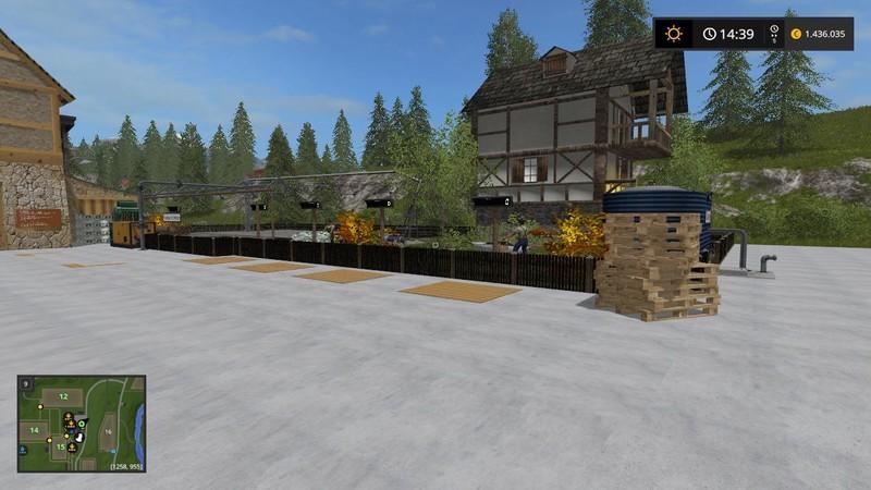 The tree plantation with information board and warehouse shelter produced wood chips wooden boards tree trunks printer paper empty pallets charcoal firewood the wood chips can be loaded with hanger or shovel for production water diesel and compost needs the sales points Müller Becker and Schmitt also take the products of my vegetable plantation to both Plantations can then delete the sales points of the vegetable plantation and replace it with the tree plantation if he wishes and please do not forget to vote Credits: TheSnake |