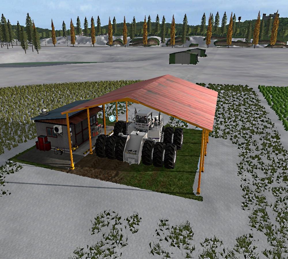 Here is the default Giants placeable workshop that has been greatly enhanced. You now have a large covered service area that will hold even the Big Bud with triples to be serviced or customozed. The service area has been moved and enlarged to make it easuer to service your fleet of vehicles. The price is still 28000 with a daily upkeep of 50. I hope you can find good use for it on your farm.