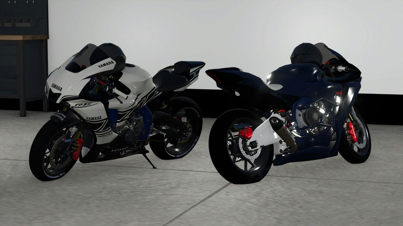 The 2020 Yamaha YZF-R1M is a racing superbike built for unparalleled performance both on the track and on public roads. Featuring a 998 cc inline four-cylinder engine with a cross-section layout, advanced Öhlins electronic suspension, and a full range of driver assistance systems, including traction control, slip control, and launch control, the R1M delivers precise handling and explosive power. The carbon fiber body and advanced electronics make it the pinnacle of Yamaha racing technology approved for use on public roads. - Brand: Yamaha Configuration options: - Animation of the dashboard (steering wheels, speedometer, headlights, gearshift). Credits: Hashy |